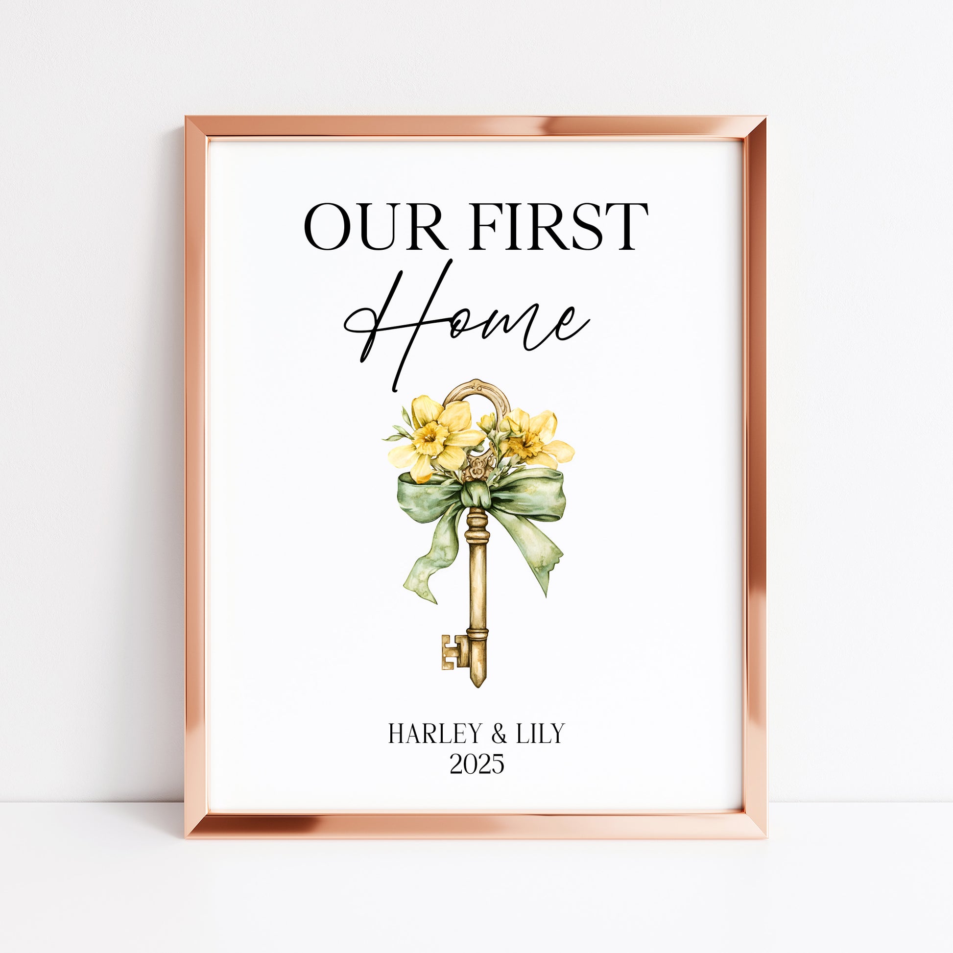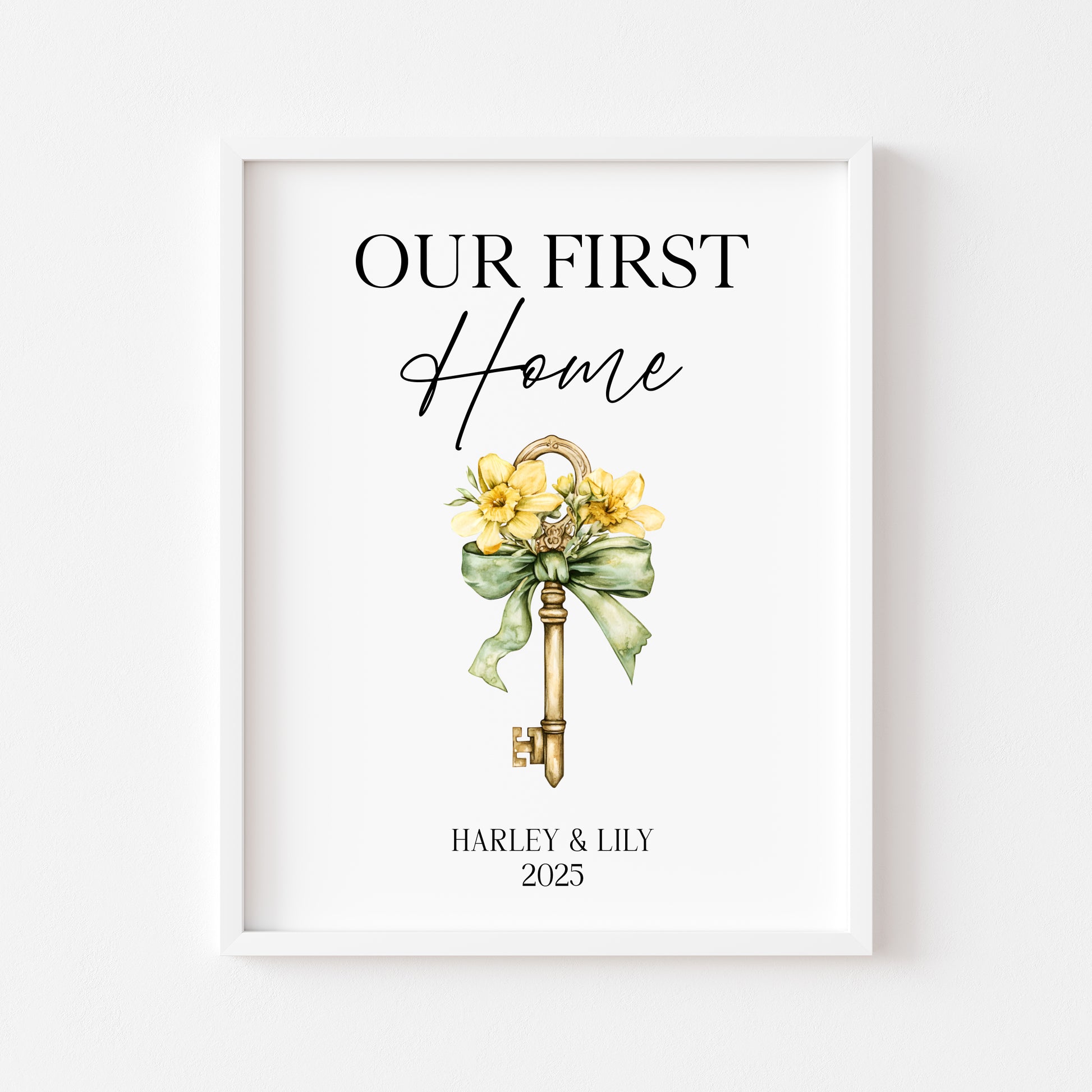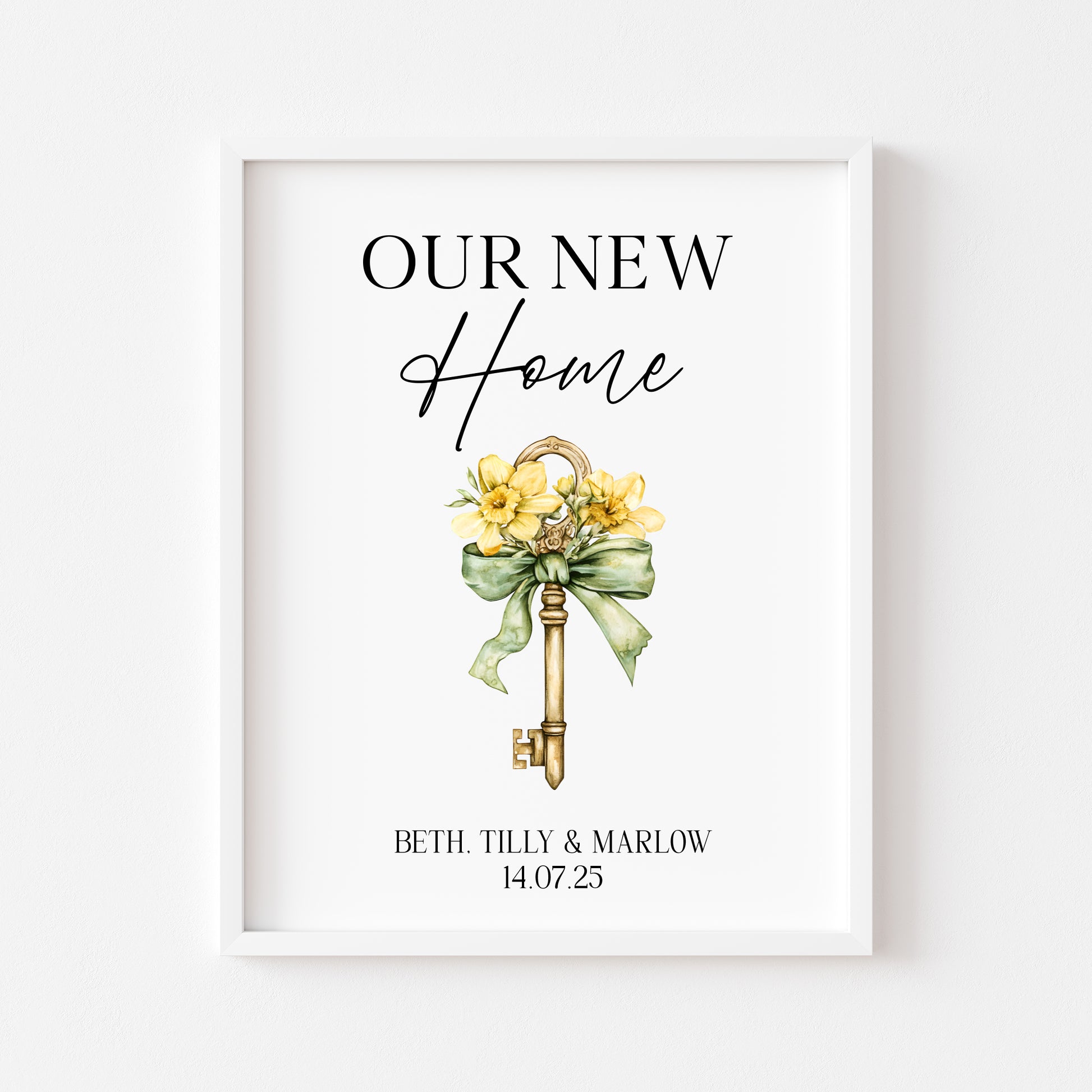 Personalised First / New Home Print Floral key New House Gift, Wall Art (unframed)