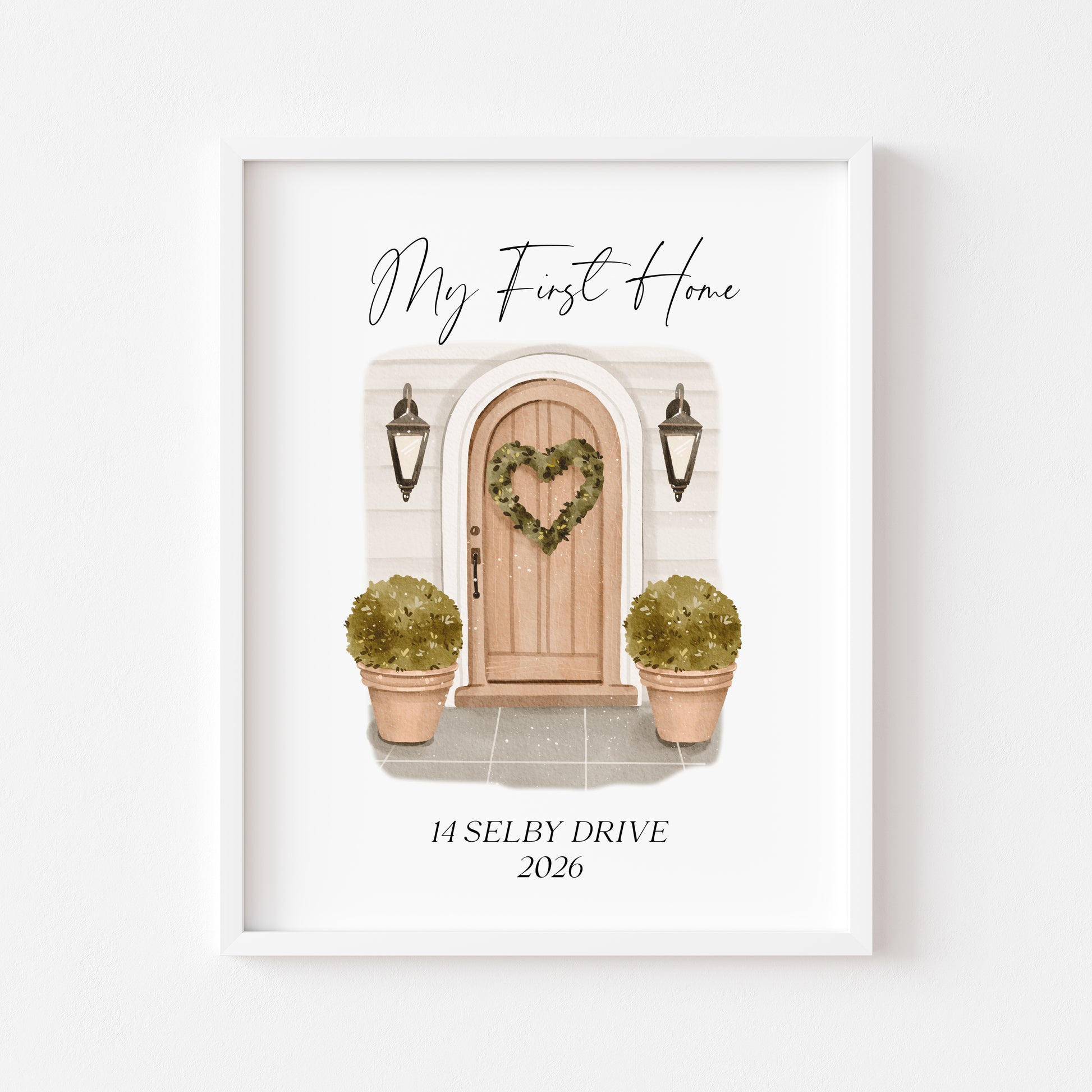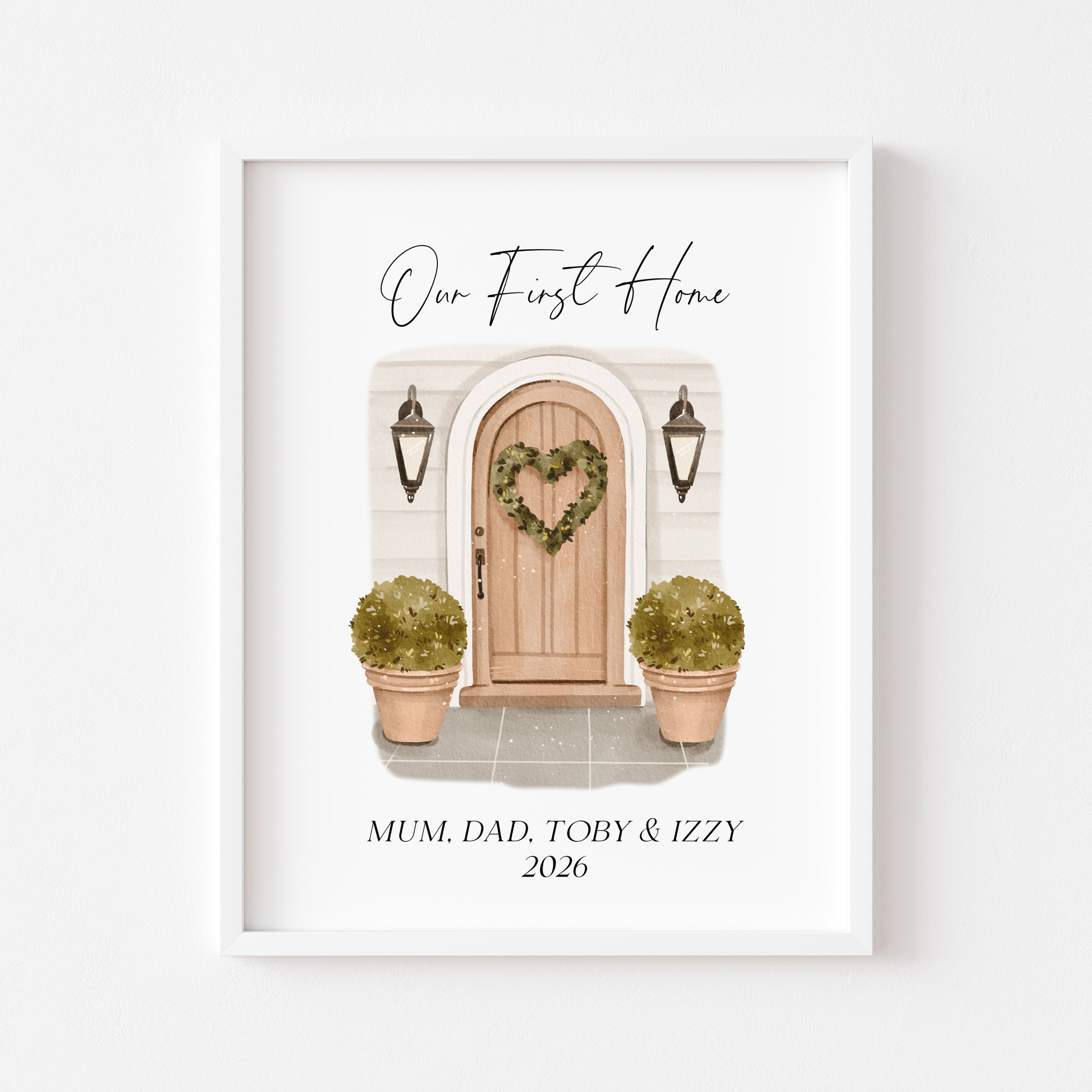 Personalised First / New Home Print front door watercolour New House Gift, Wall Art (unframed)