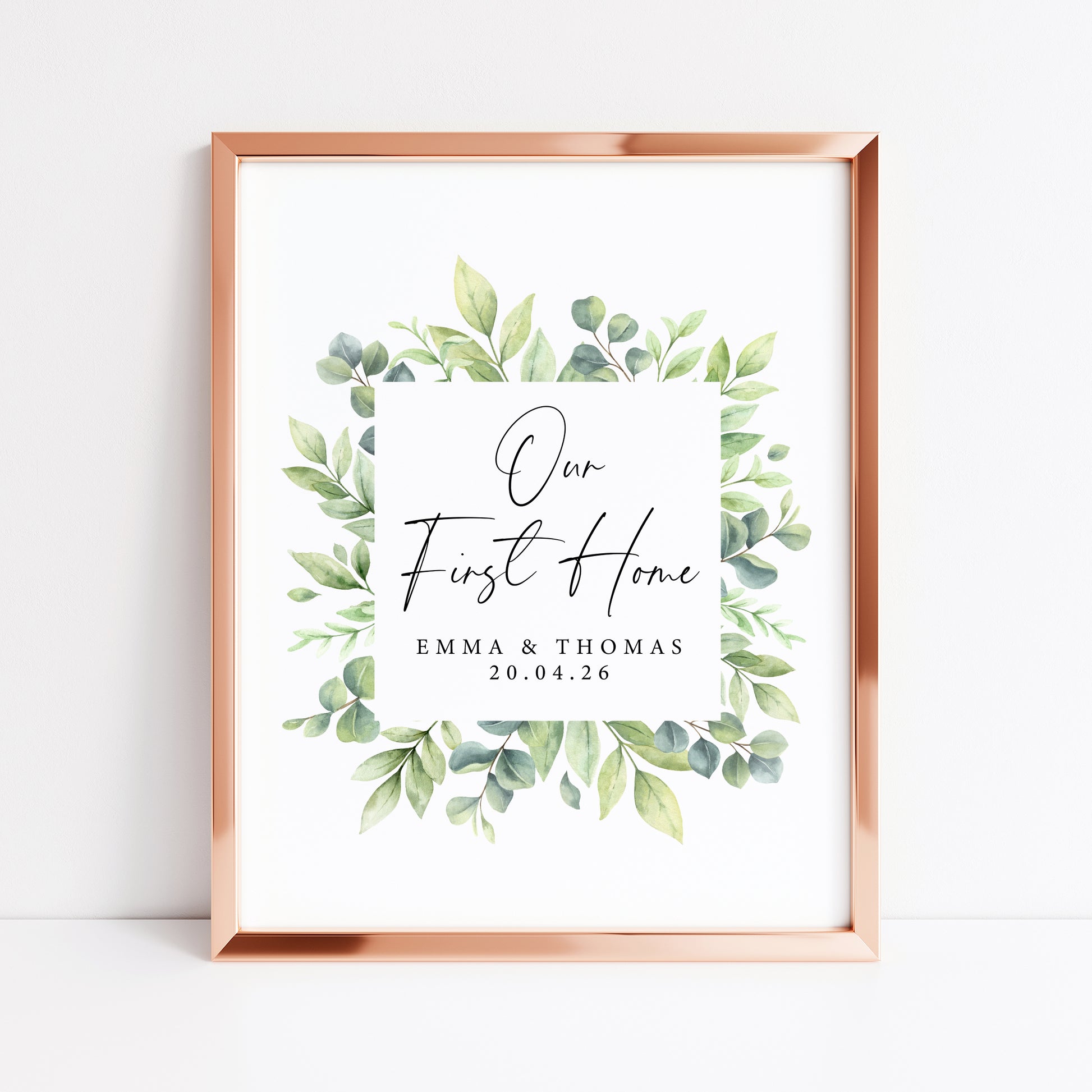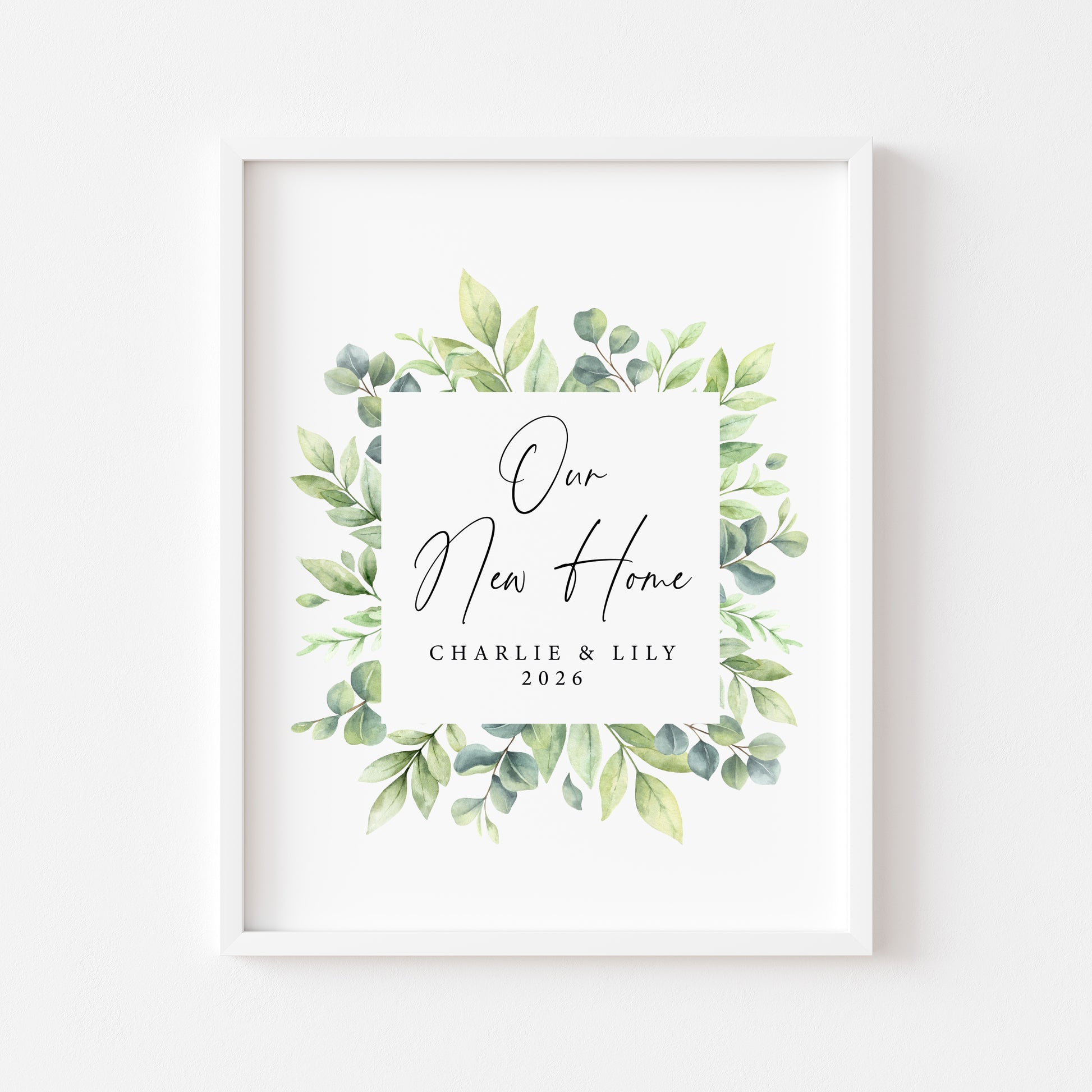 Personalised First / New Home Print green wreath watercolour New House Gift, Wall Art (unframed)
