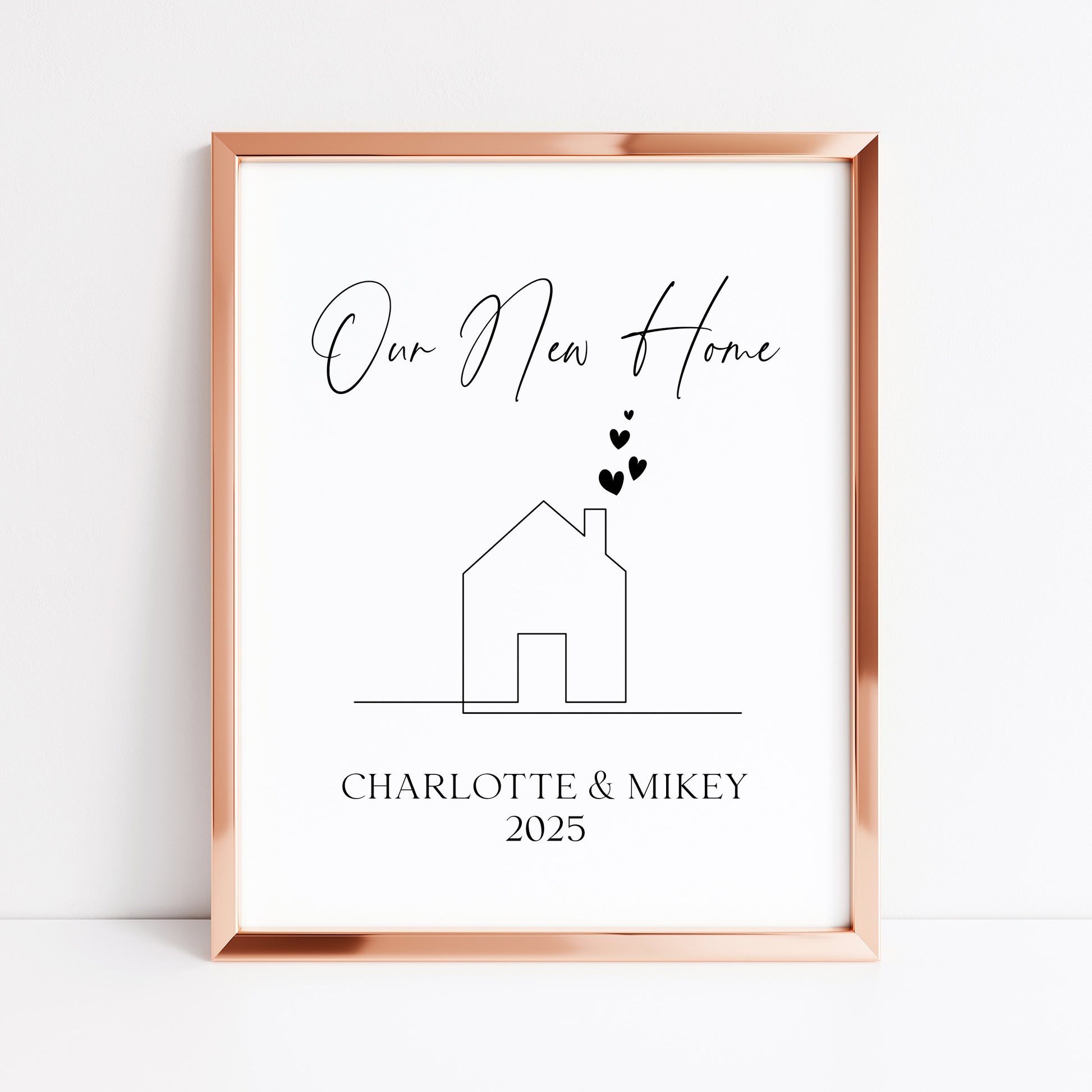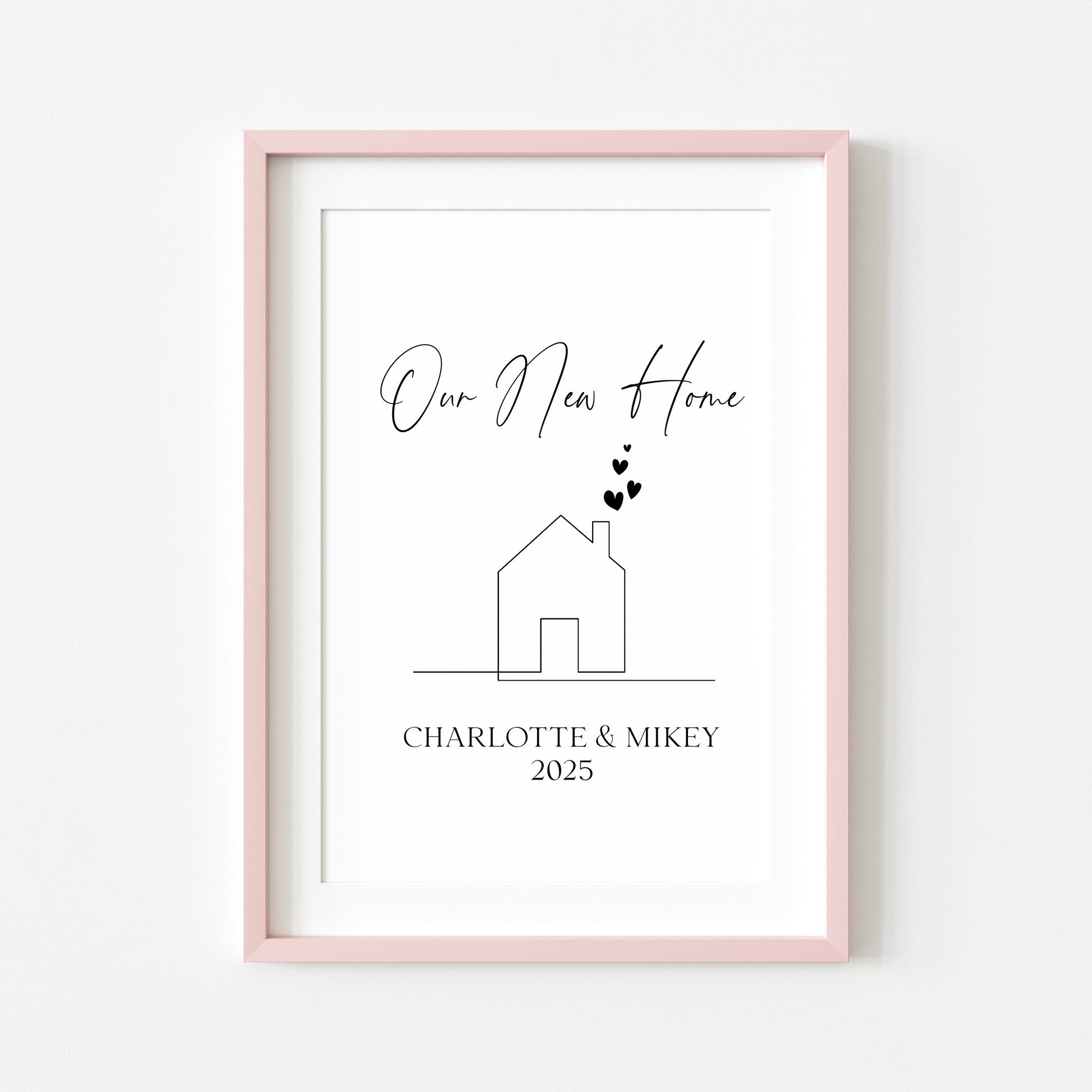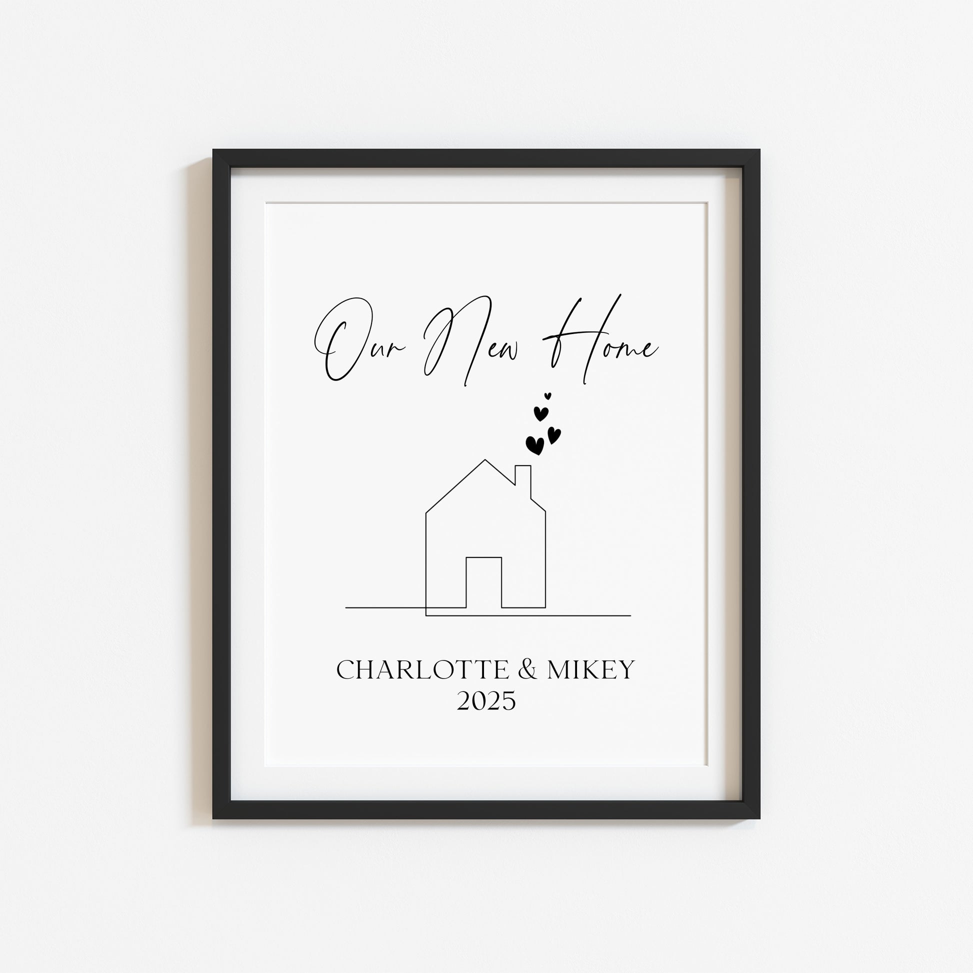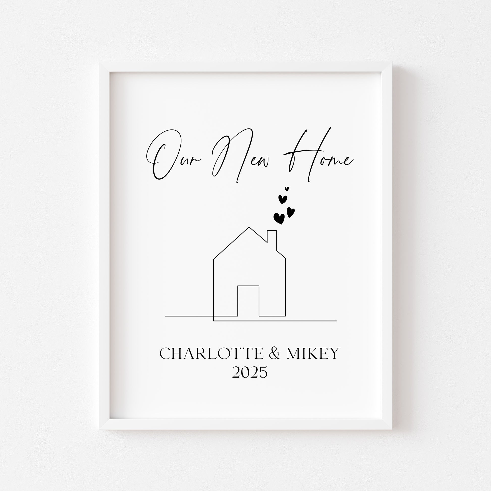 Personalised First / New Home Print New House line hearts Gift, Wall Art (unframed)