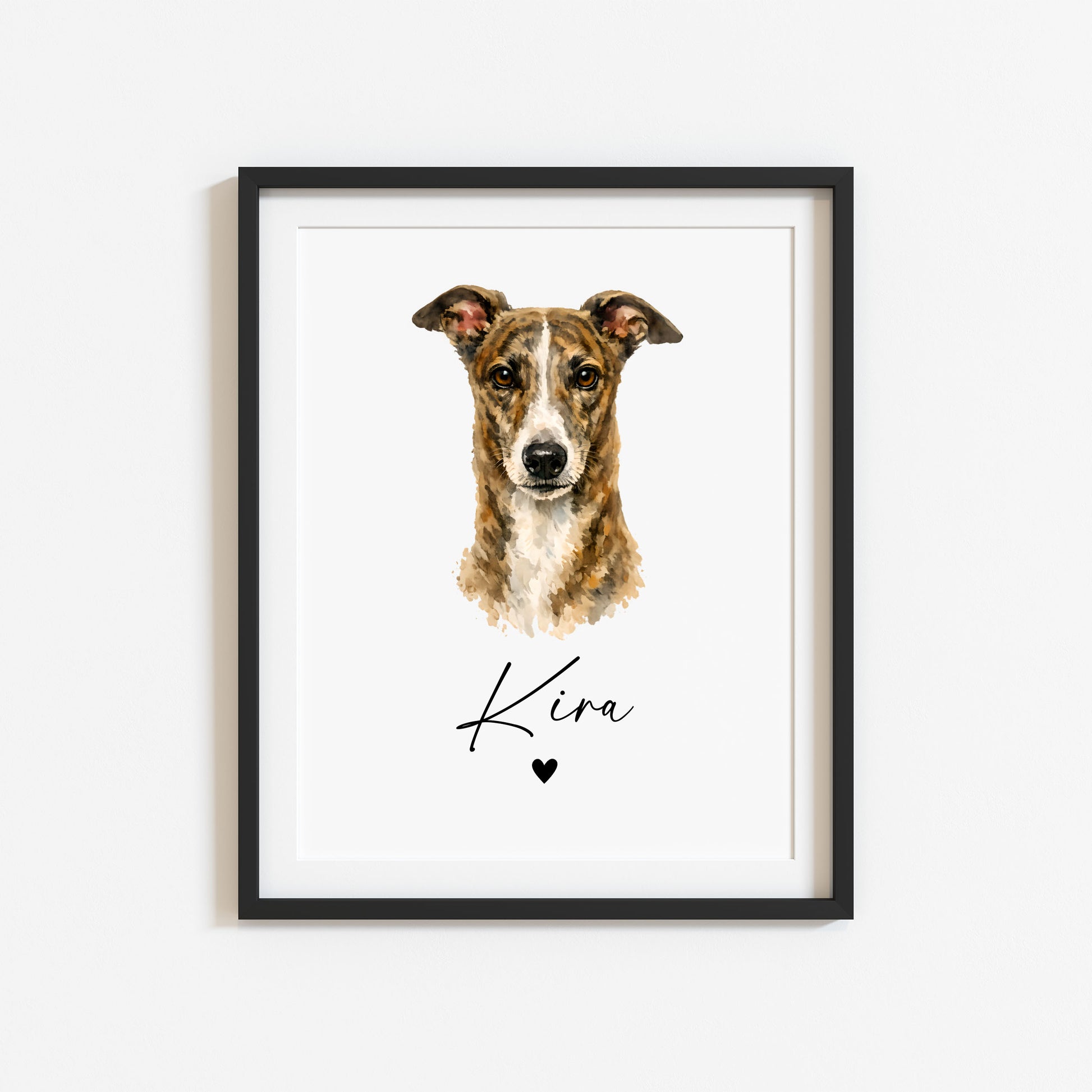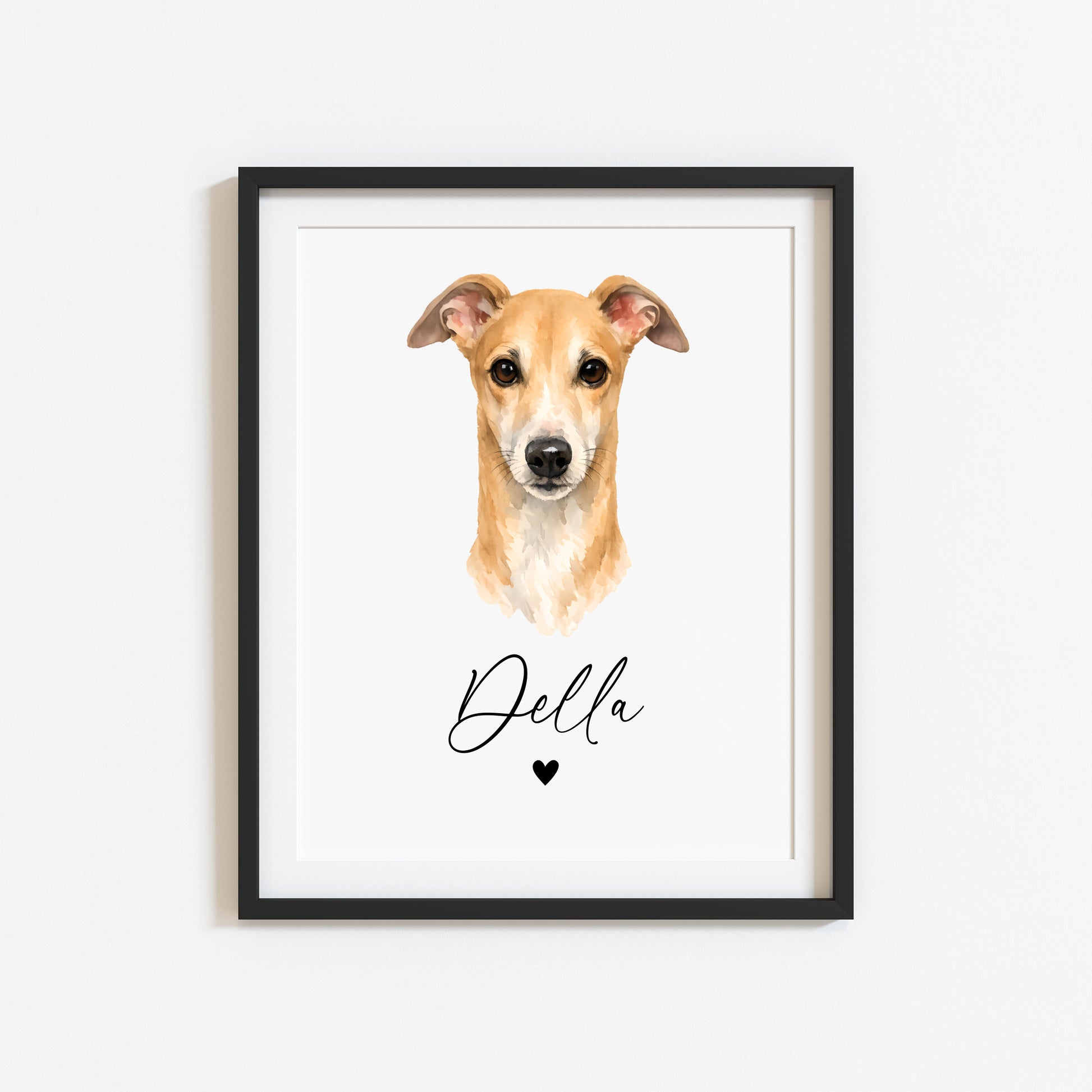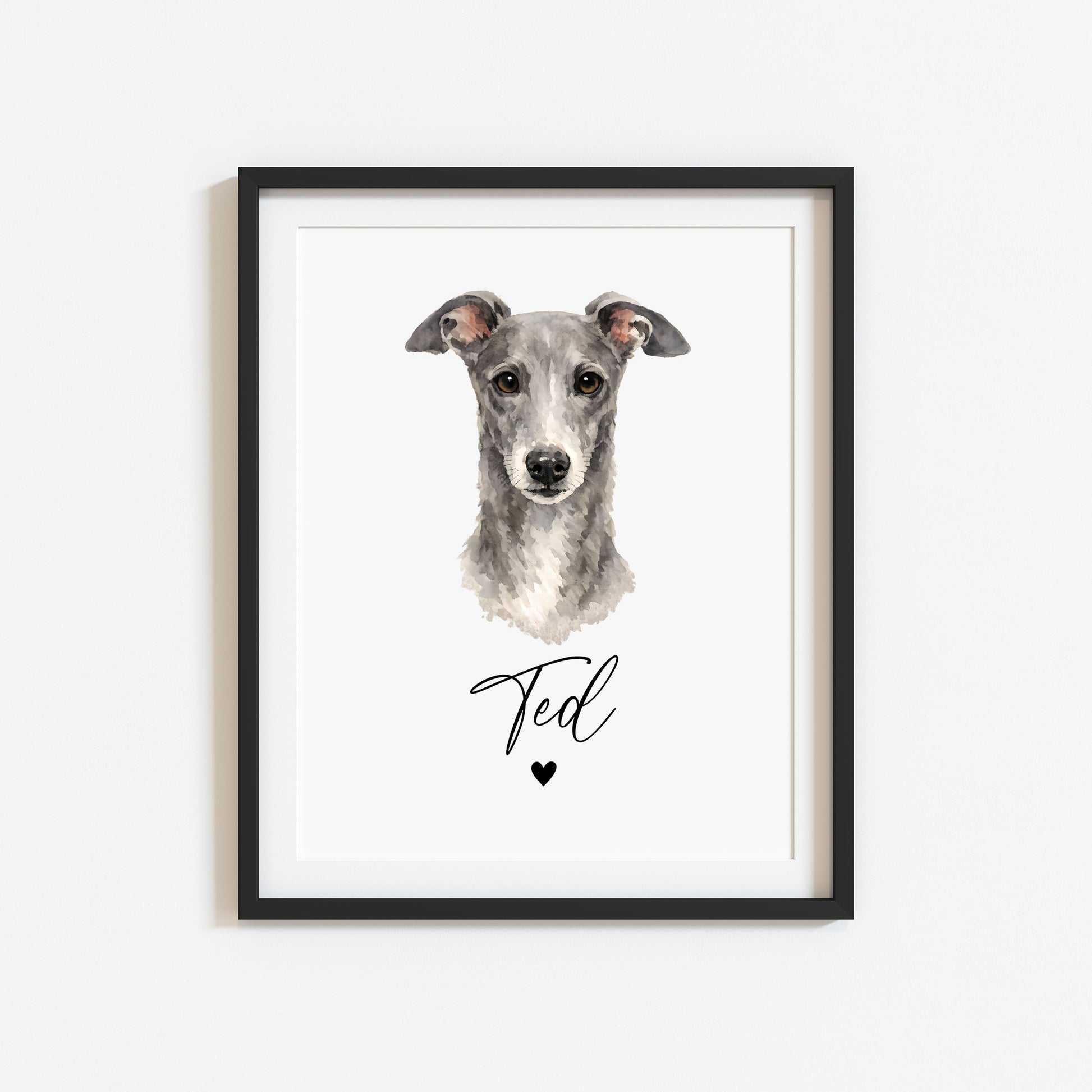 Personalised Grey Hound Print Custom Name Pet portrait - 4 colours, unframed wall art