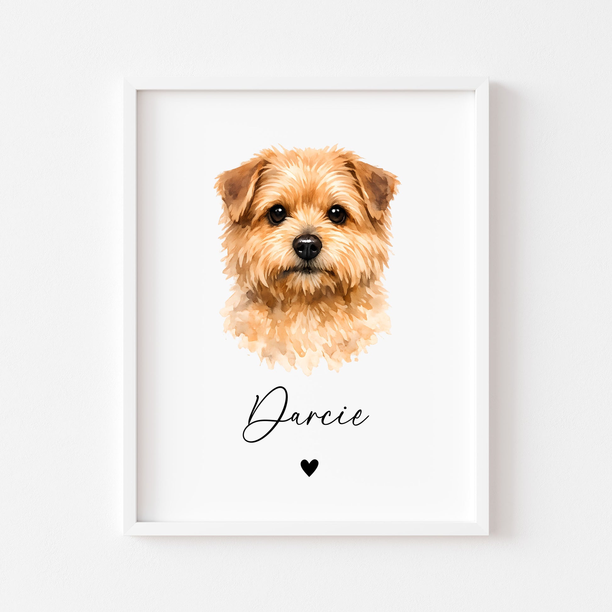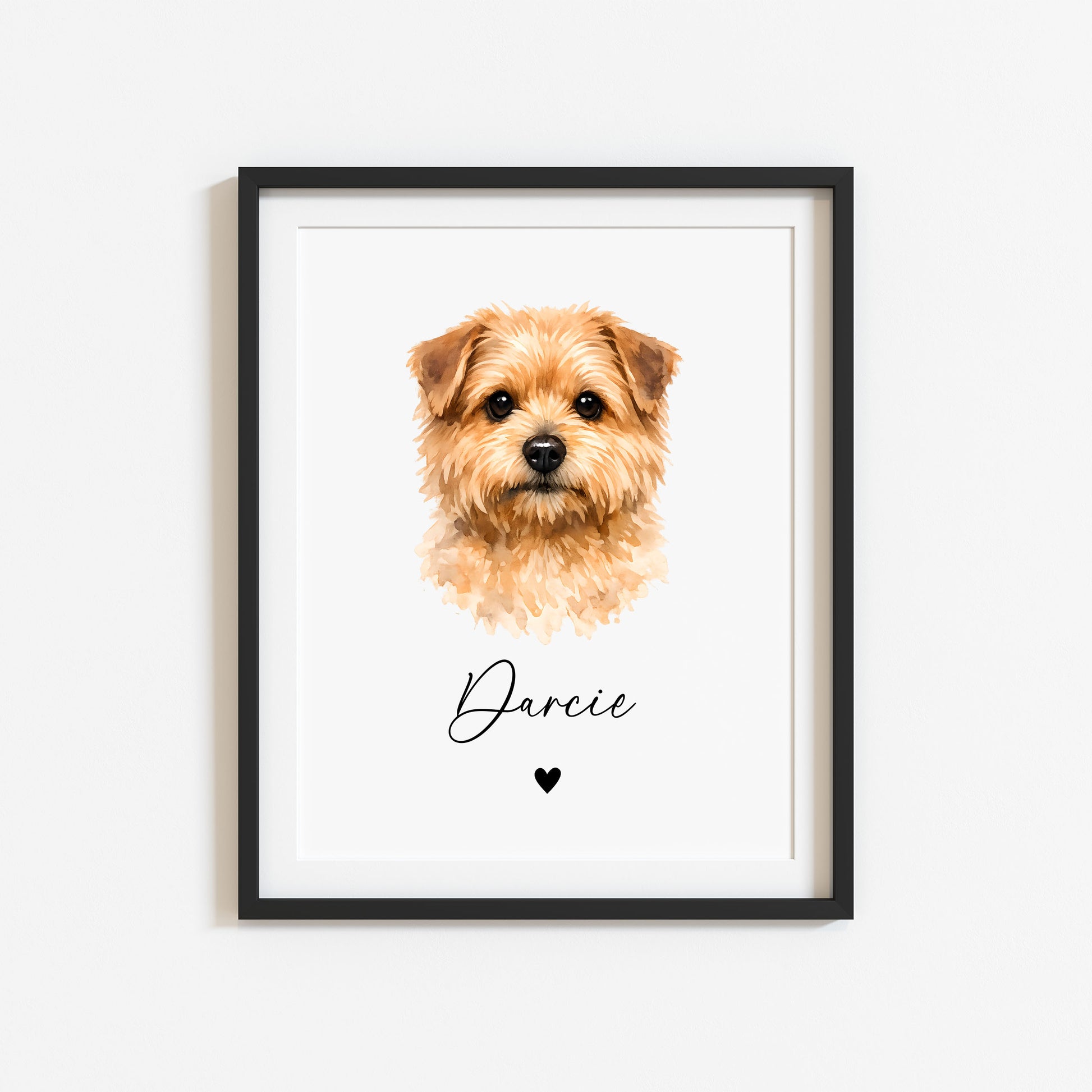 Personalised Norfolk Terrier Dog Print Custom Name Pet portrait watercolour unframed wall art