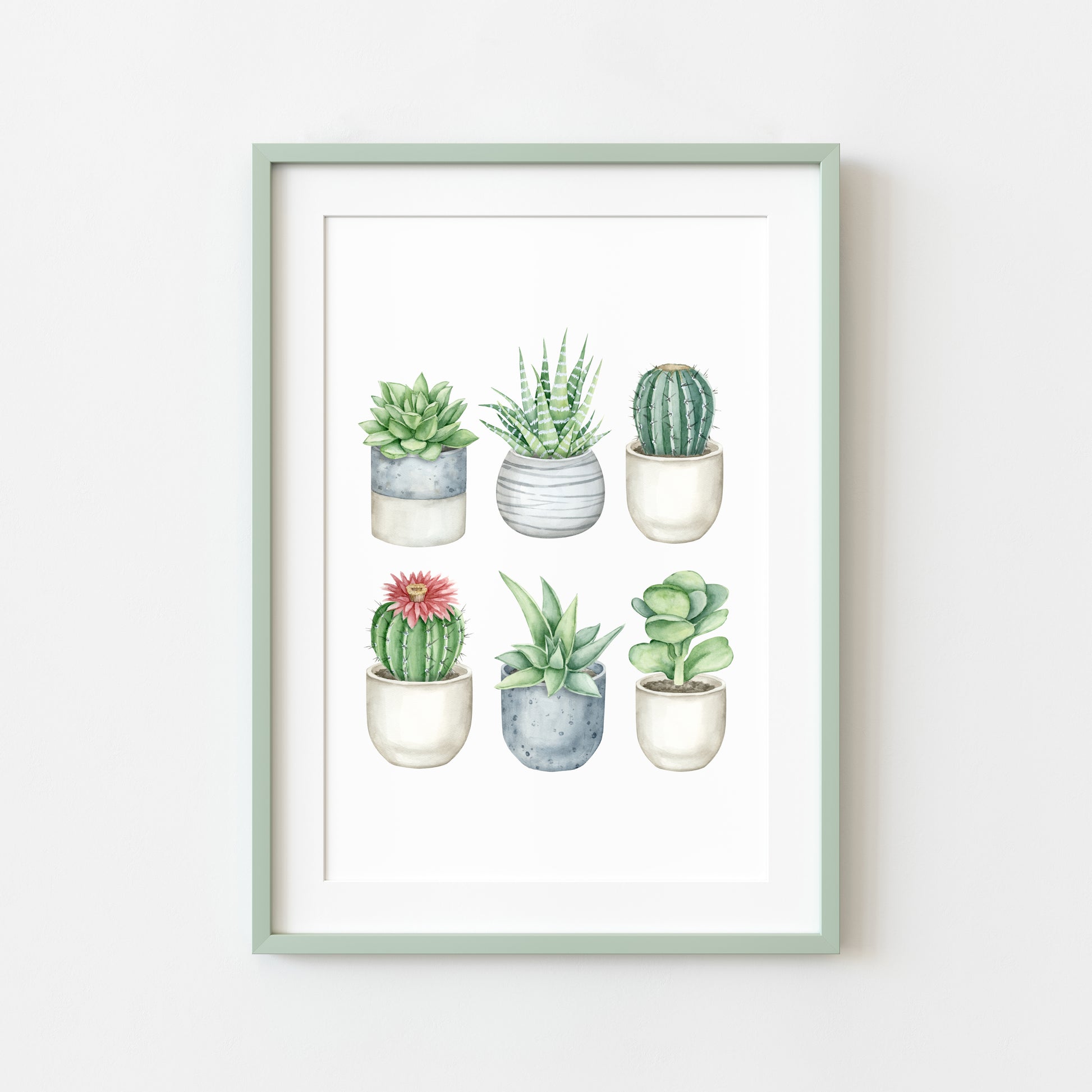 Plant illustration, cactus cacti succulents watercolour 6 illustrations unframed wall art poster print