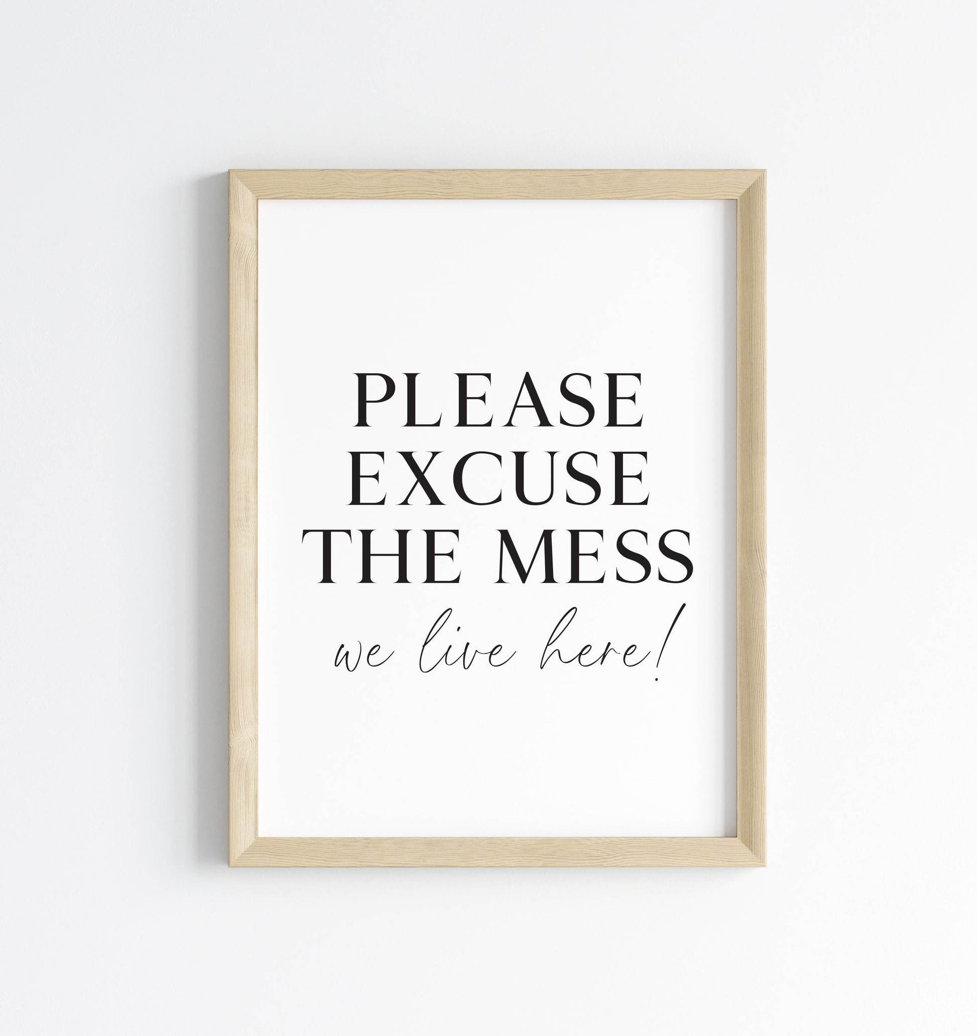 Please excuse the mess, we live here funny home sign unframed wall art poster print