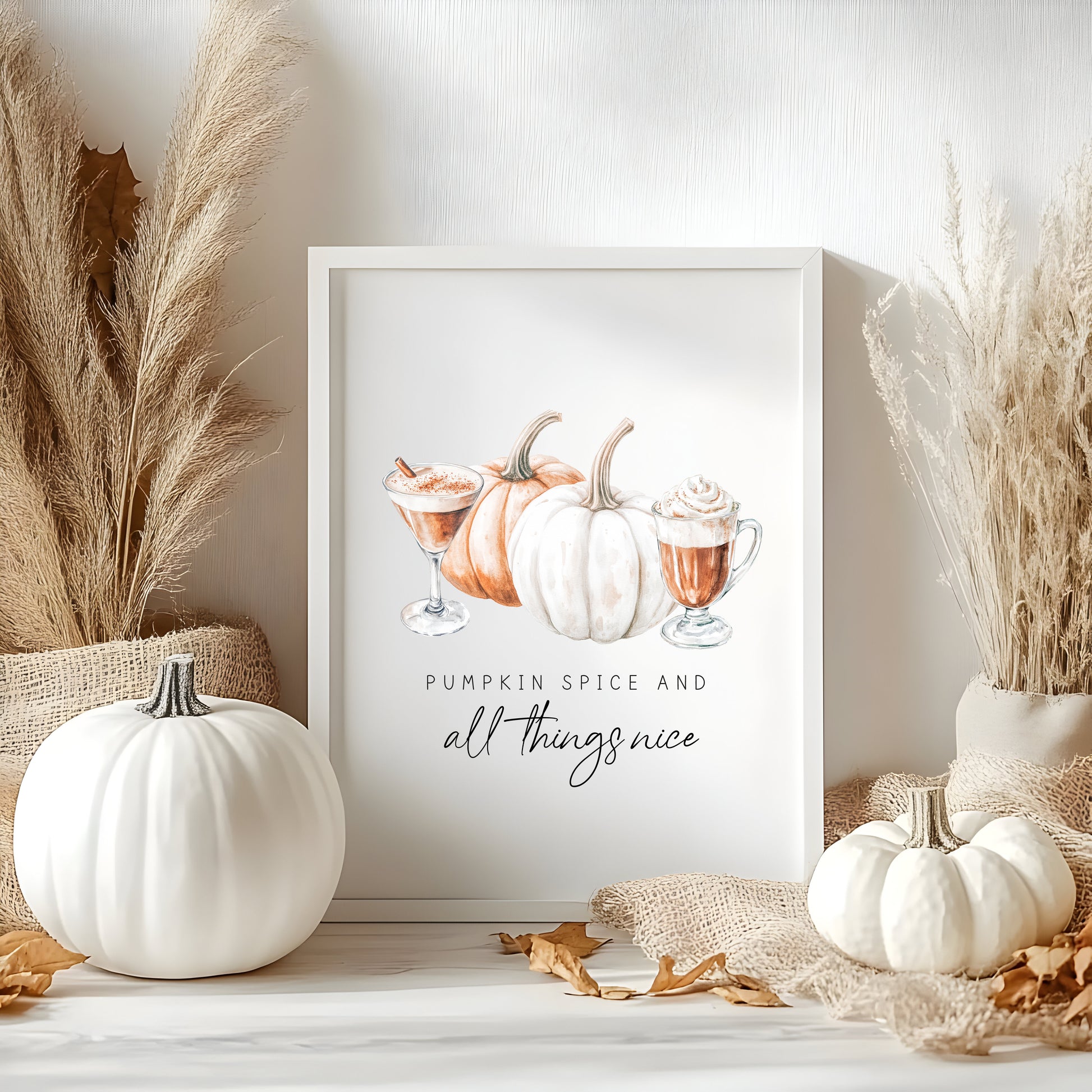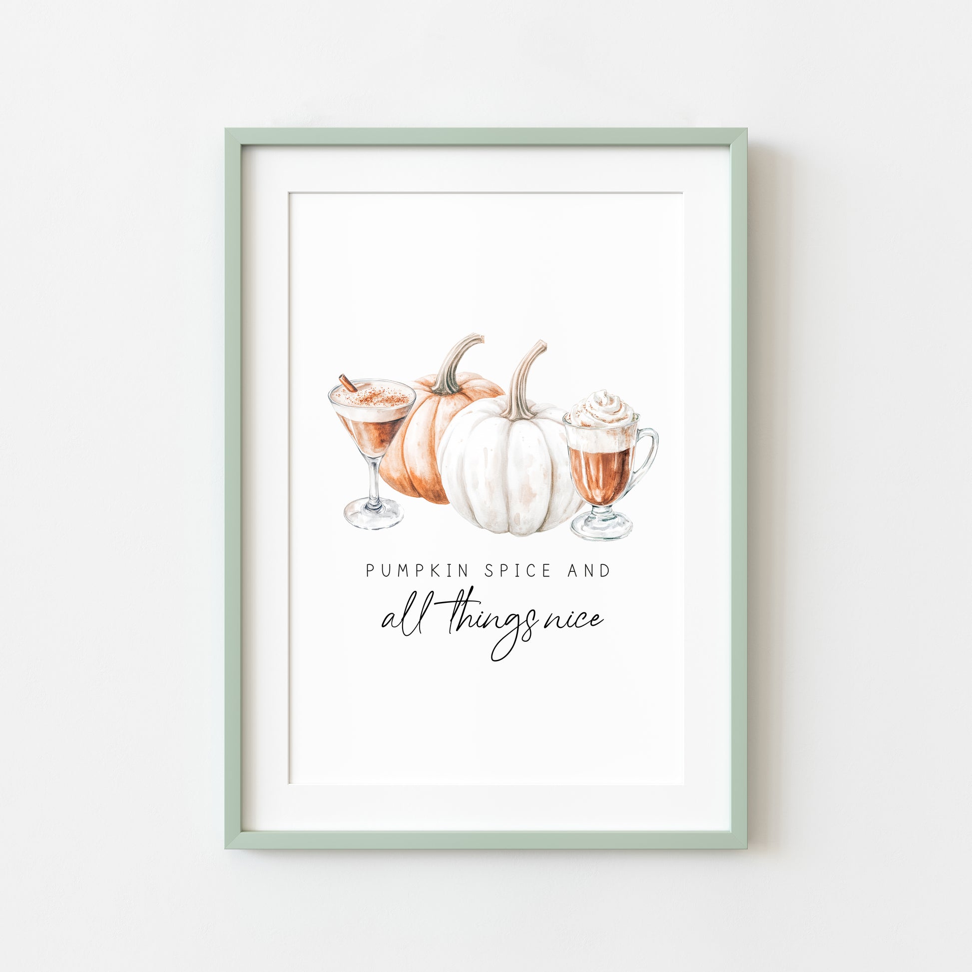 Pumpkin spice and all things nice autumn coffee fall spiced latte unframed wall art poster print, autumn home decor autumn decor, fall art