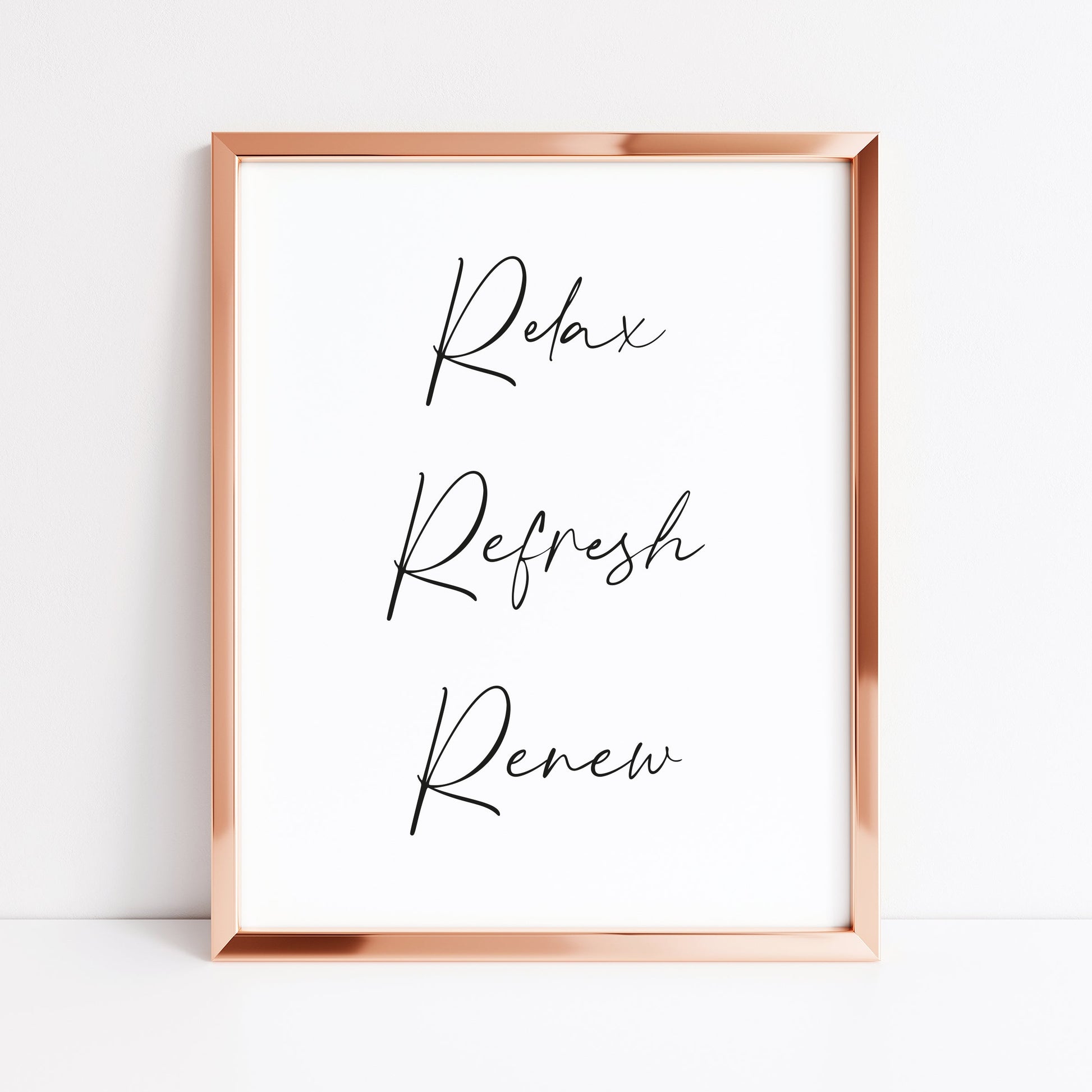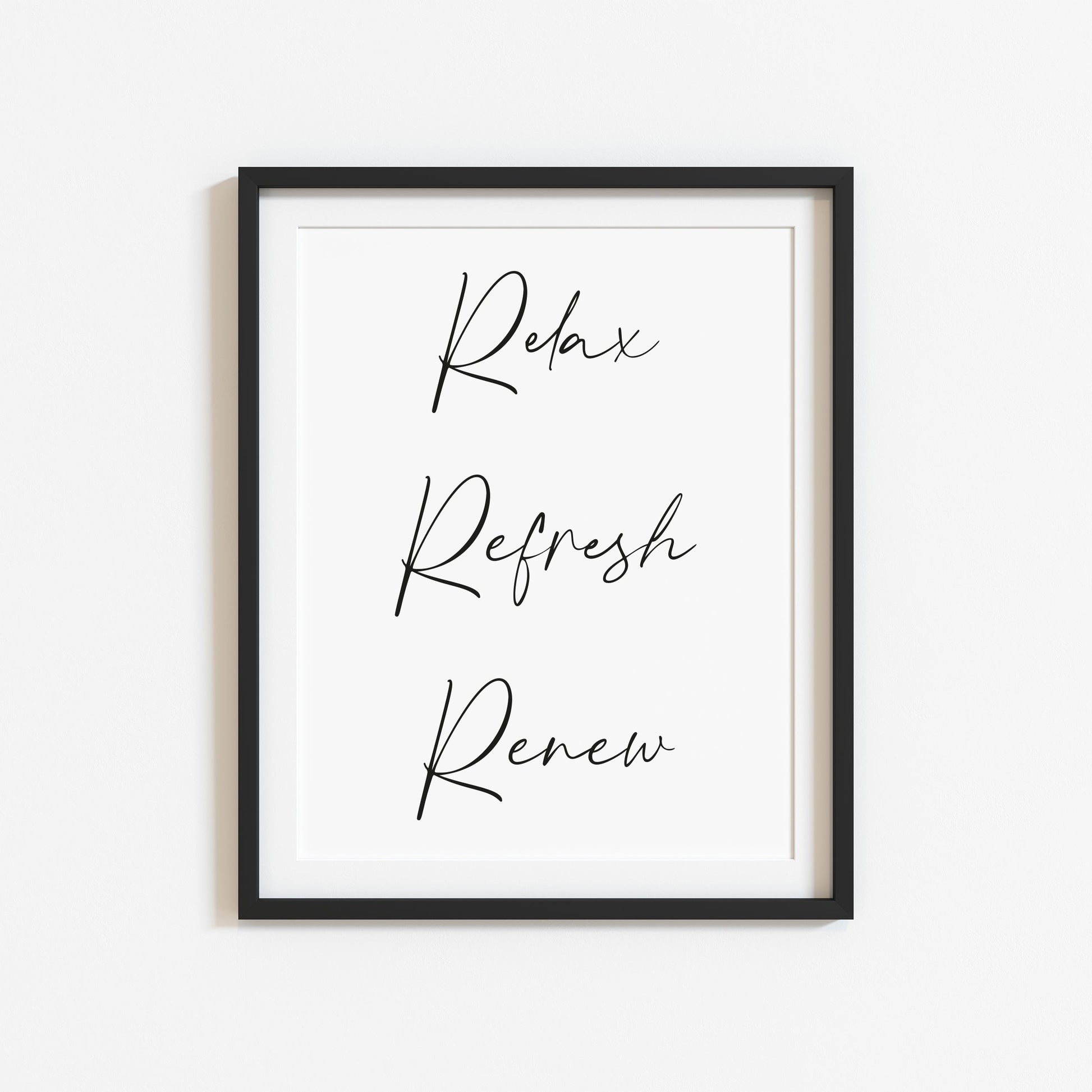 Relax refresh renew bathroom typography bathroom unframed wall art poster print