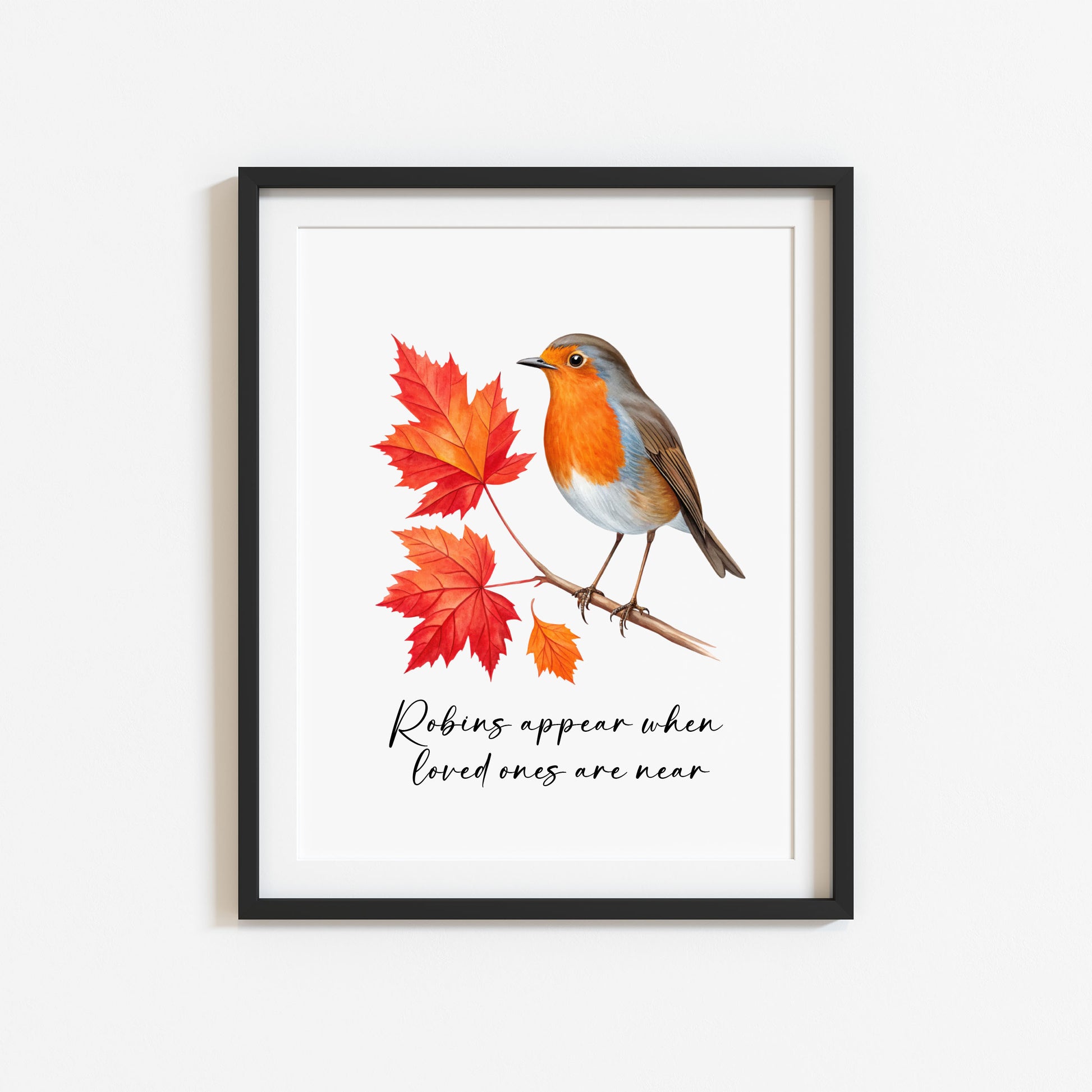 Robin Autumn Christmas Print Watercolour Red leaves Art unframed wall art poster