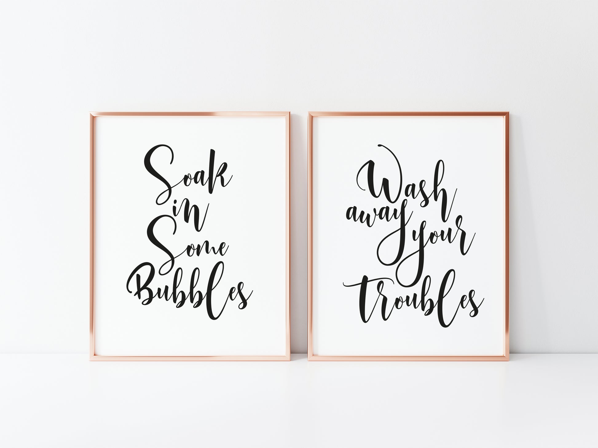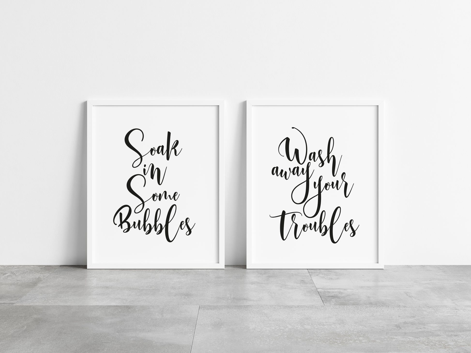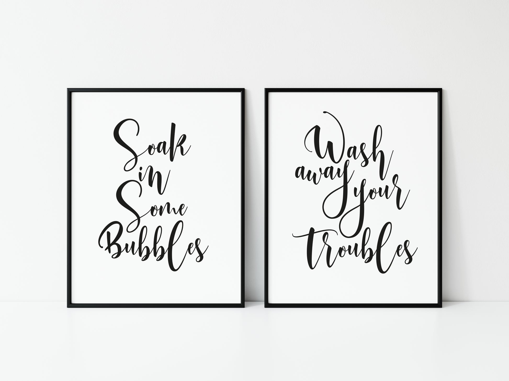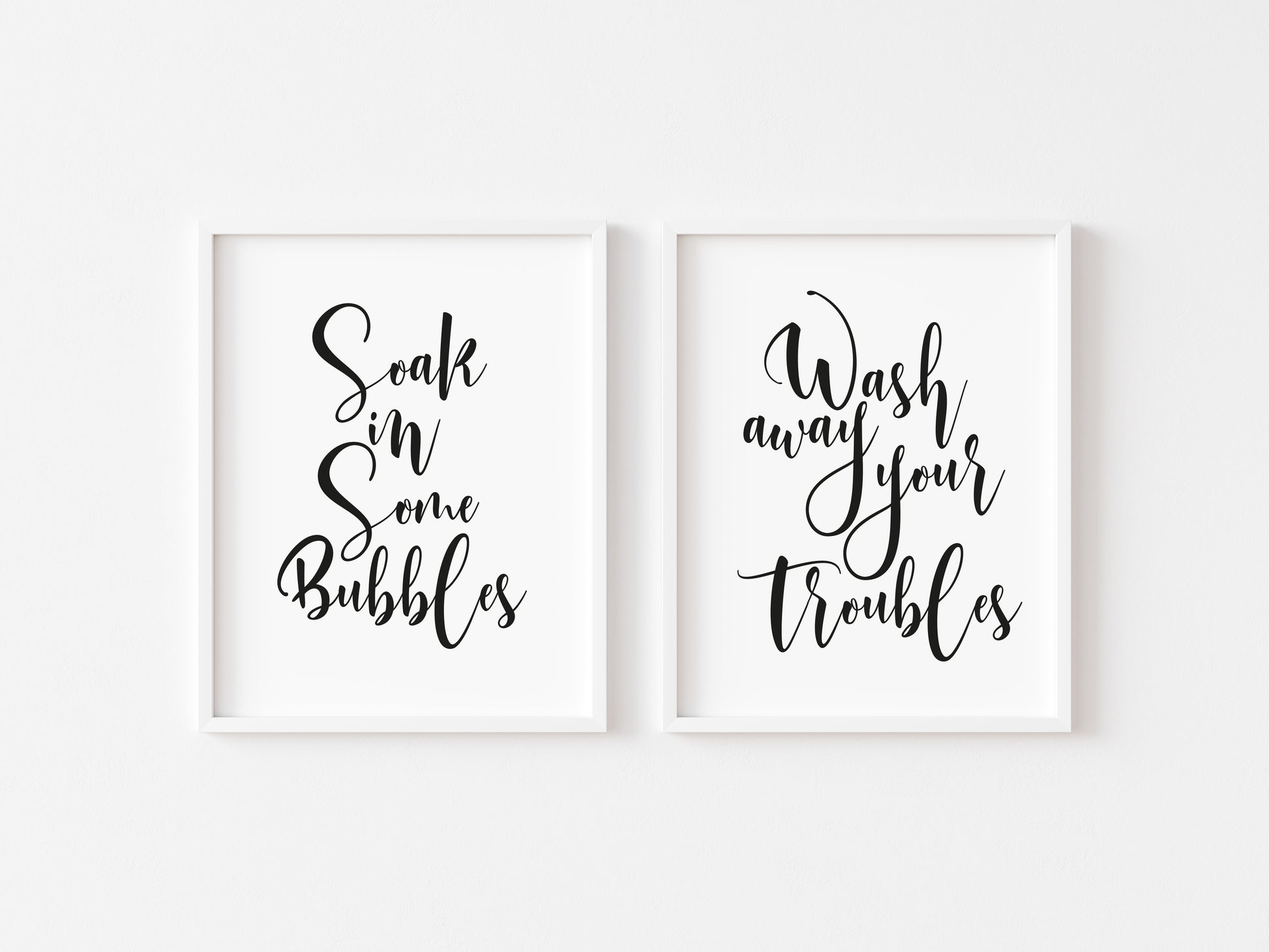 Set of 2 bathroom prints, Soak in some bubbles wash away your troubles bathroom washroom toilet en suite unframed wall art poster prints