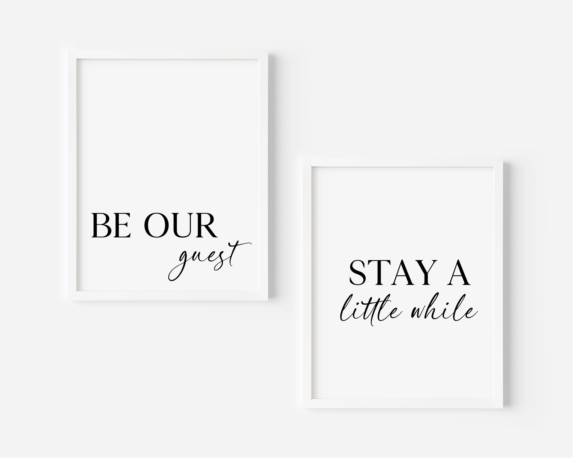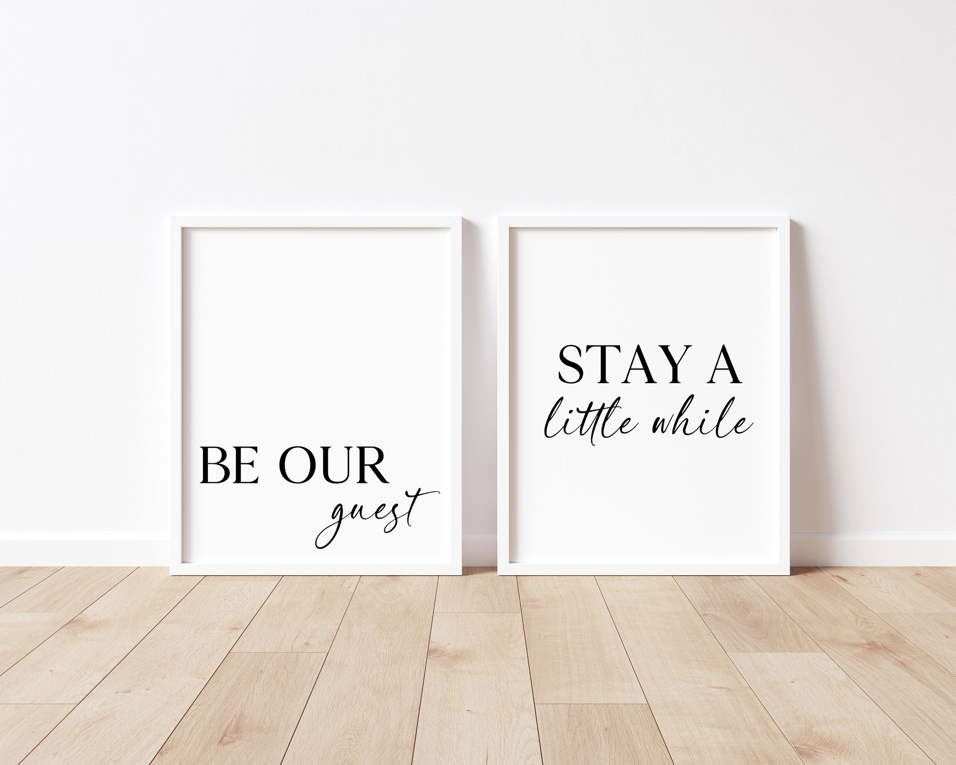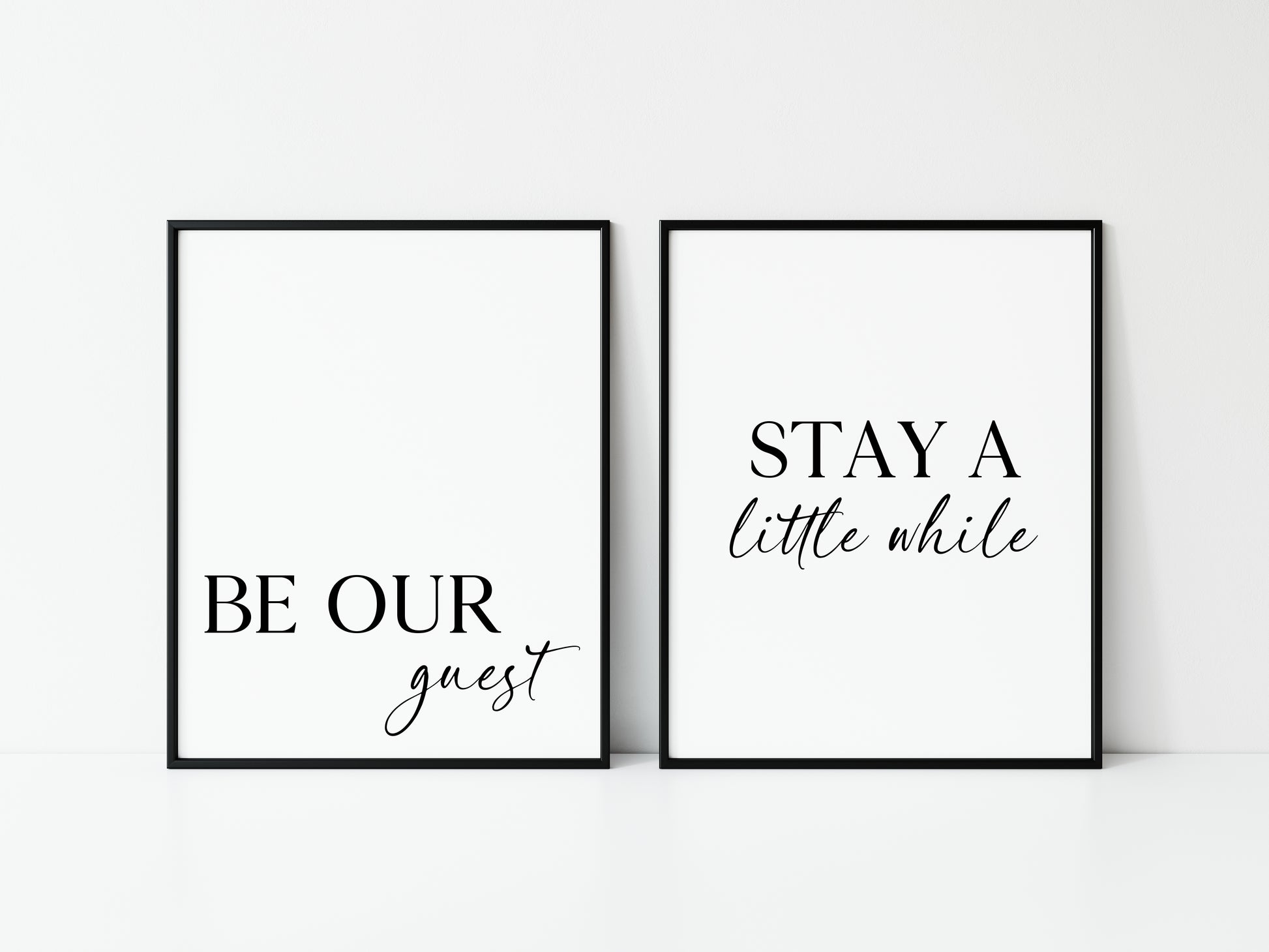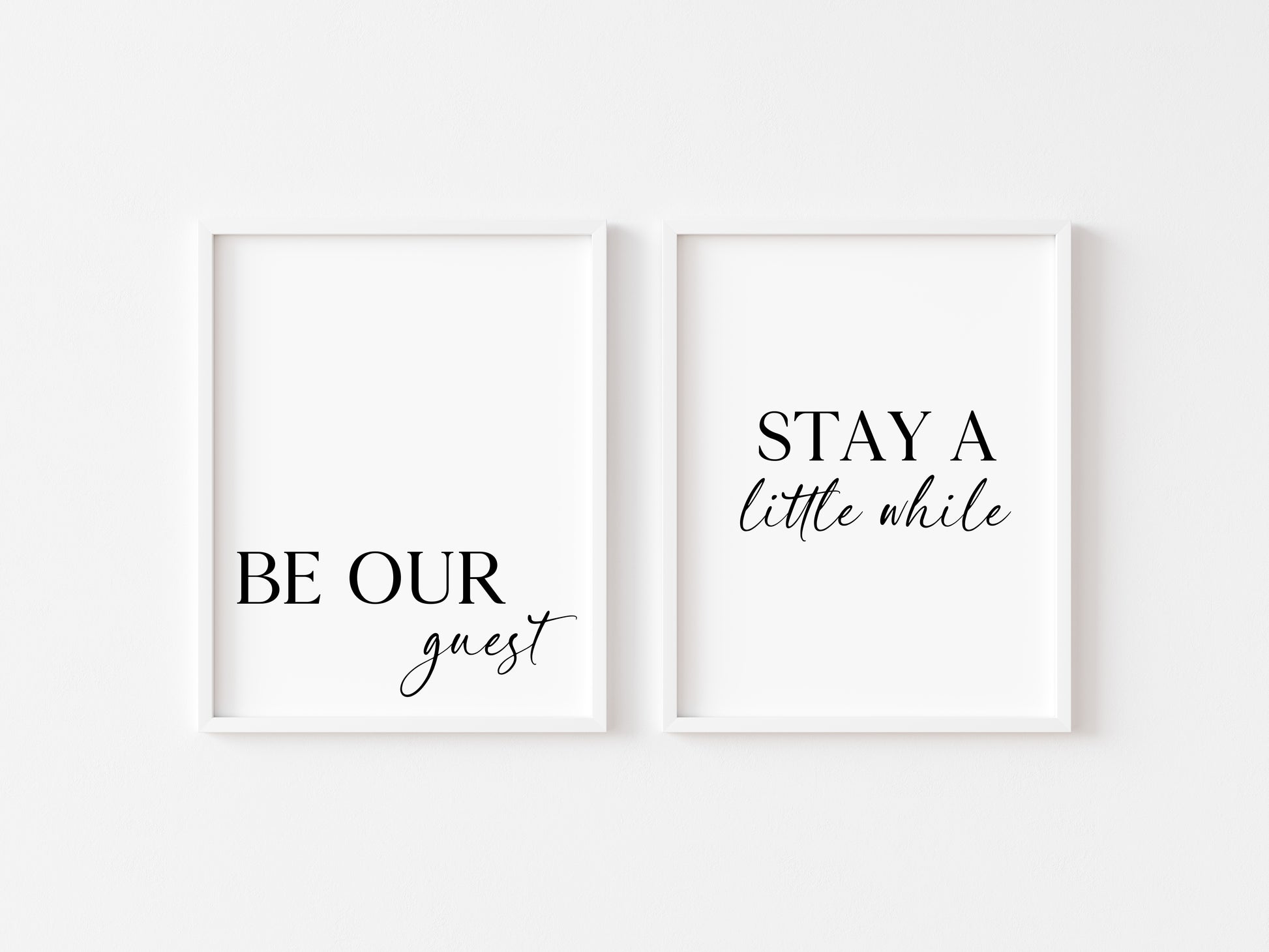 Set of 2 home bedroom prints Be our guest and stay a little while unframed wall art poster prints