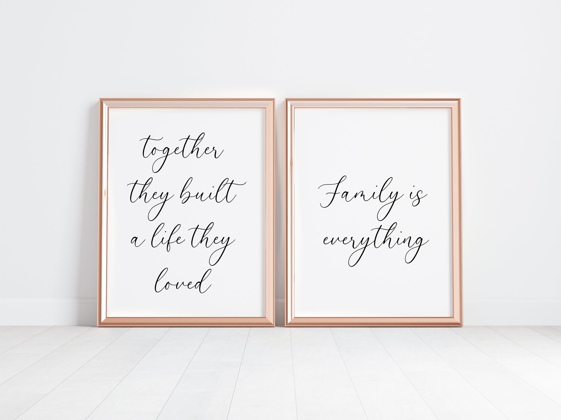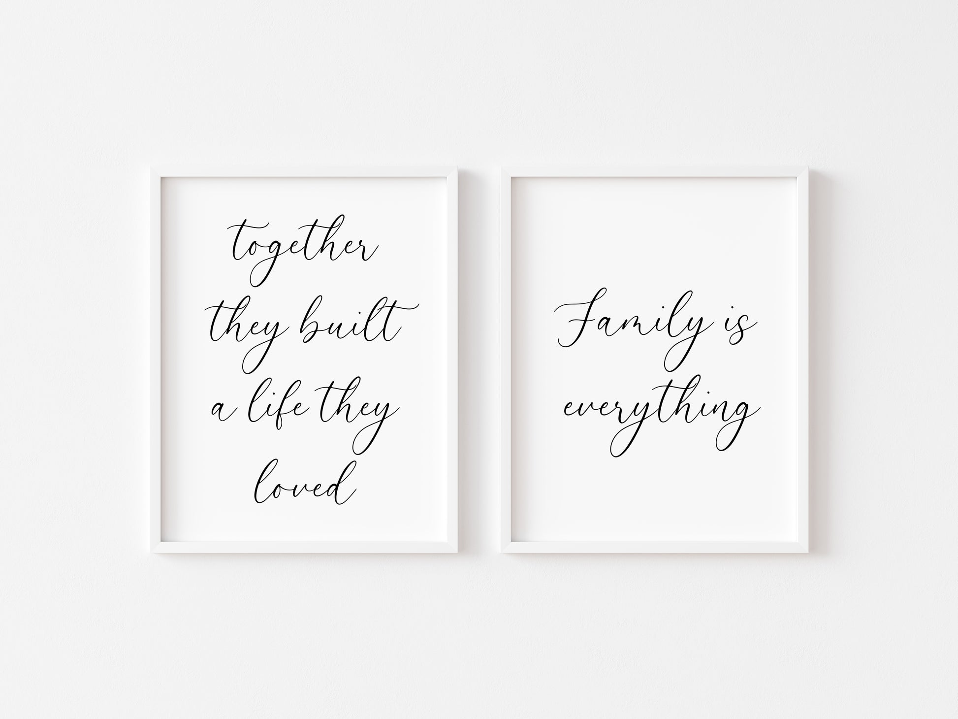 Set of 2 home prints, together they built a life they loved, family is everything unframed wall art poster prints