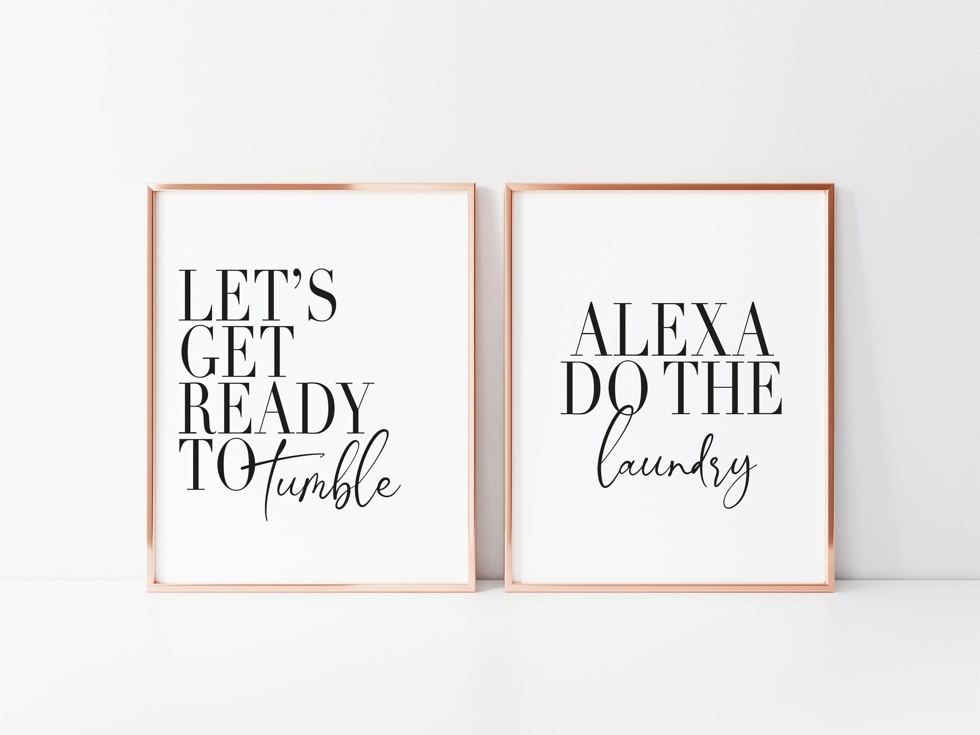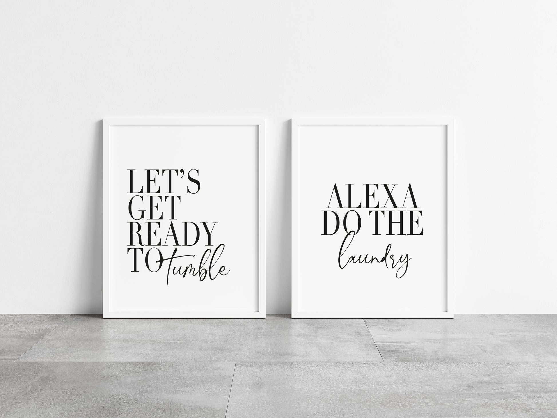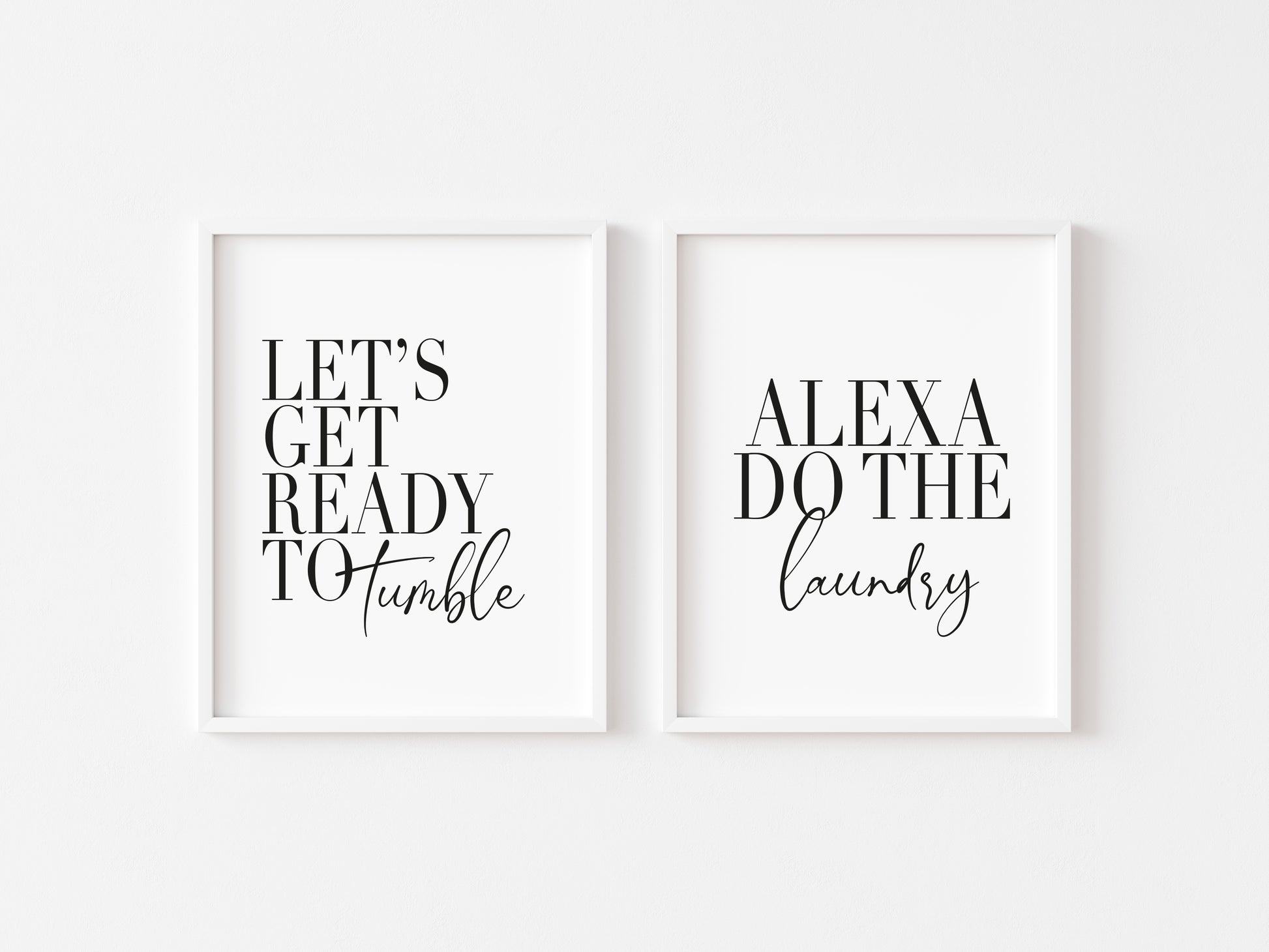 Set of 2 kitchen laundry utility prints, let's get ready to tumble, Alexa do the laundry funny kitchen unframed wall art poster prints