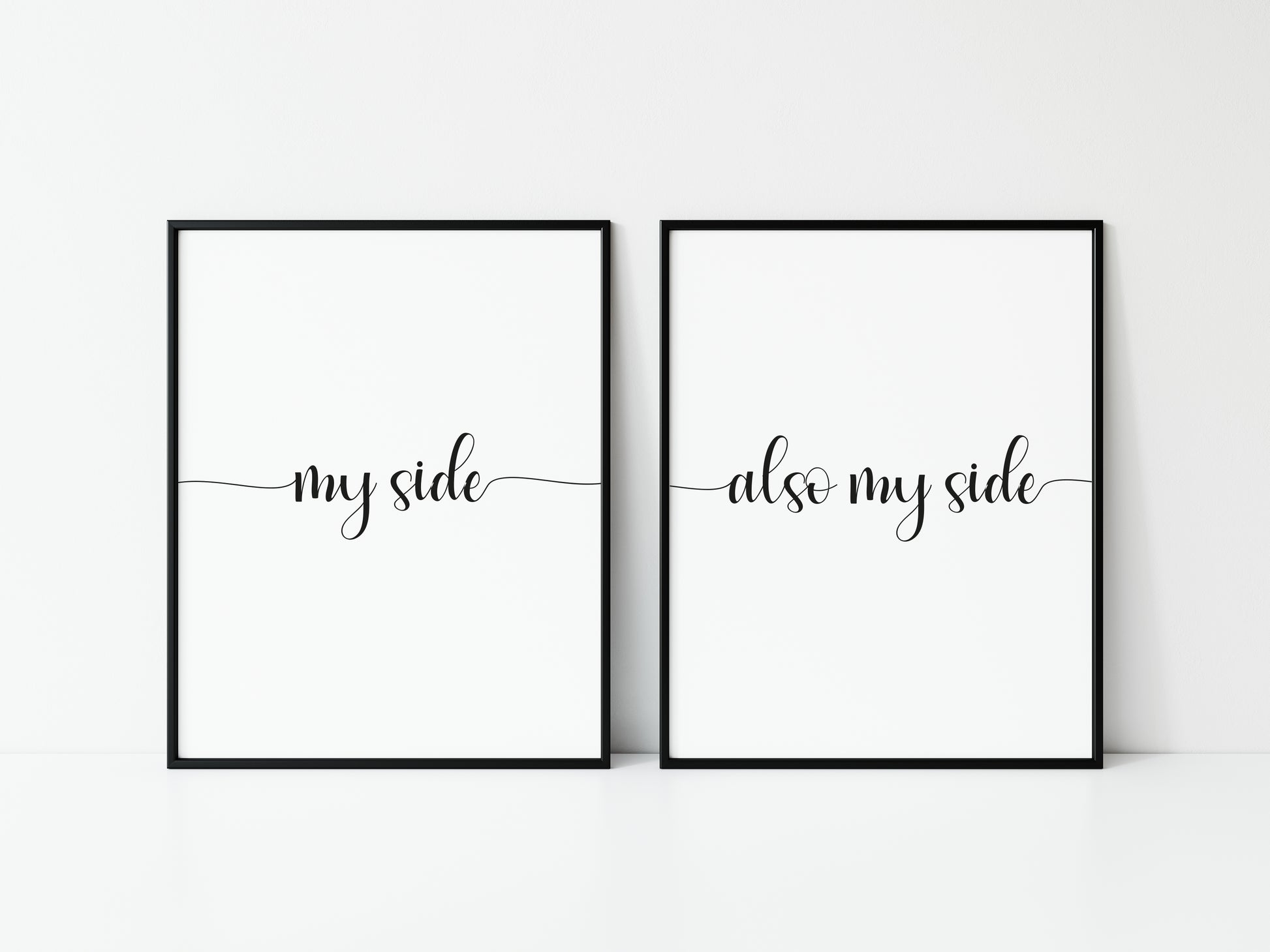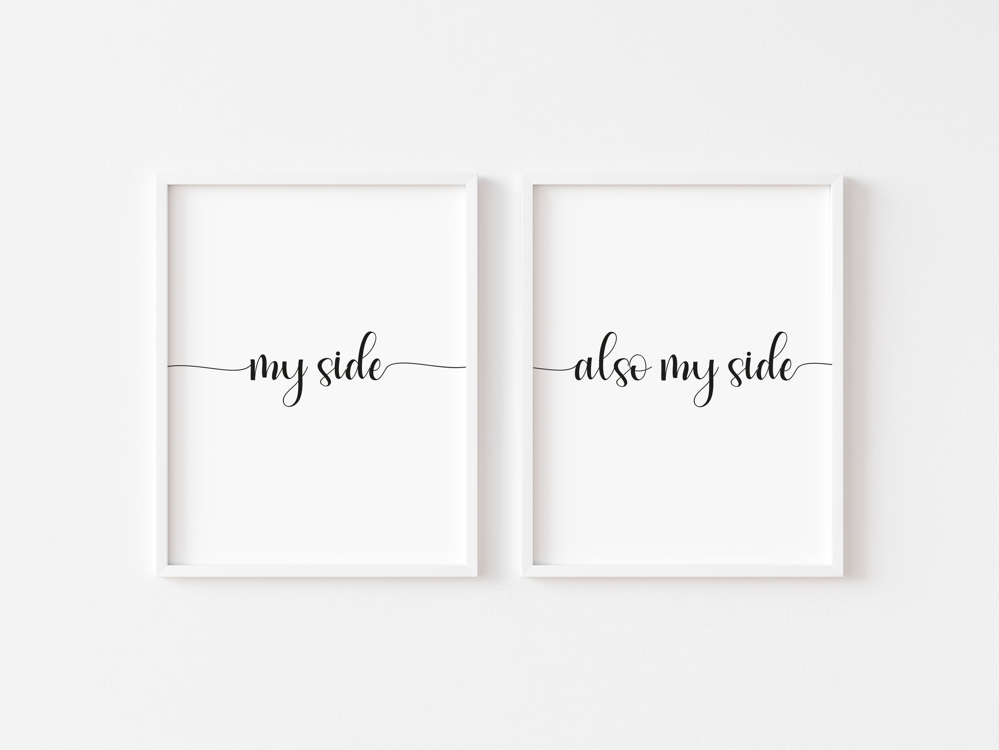 Set of 2 prints, my side and also my side funny bedroom borderless unframed wall art poster prints