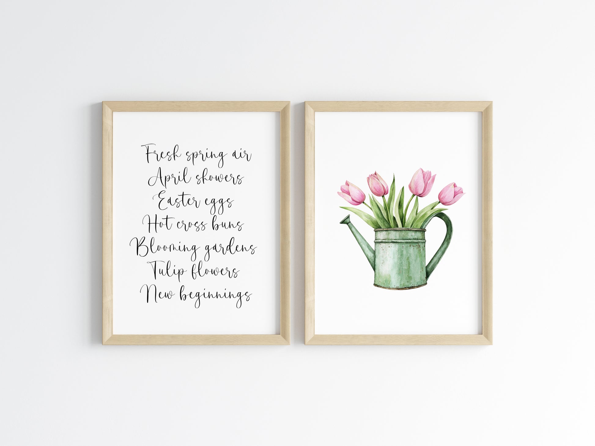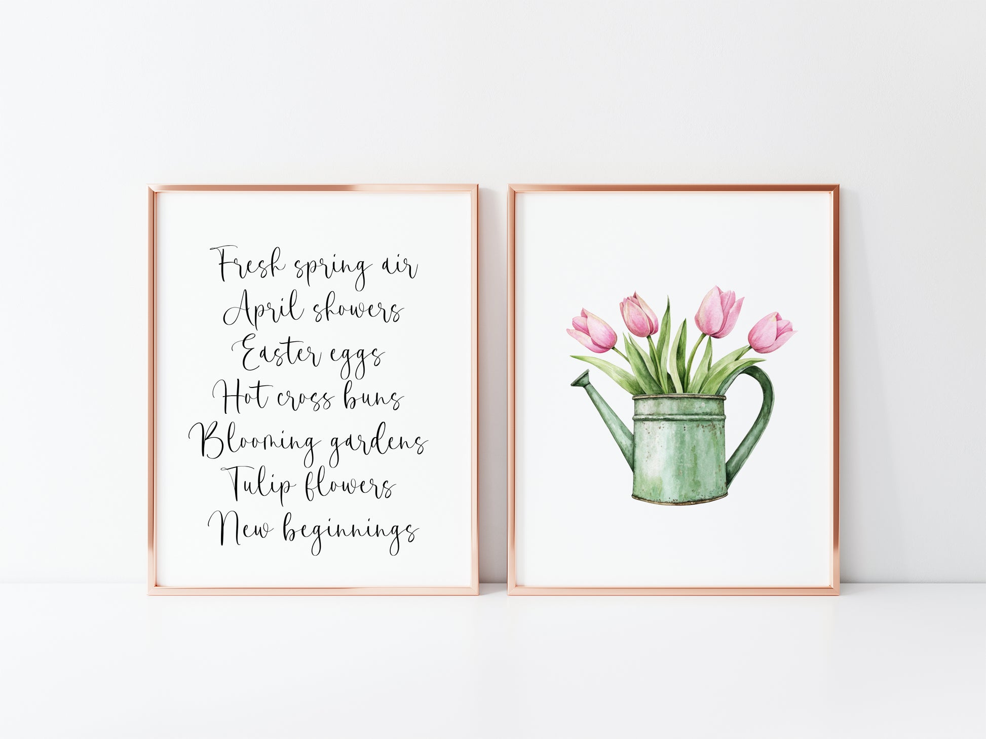 Set of 2 spring prints, spring favourites, description print and tulips gardening can seasonal unframed wall art poster prints, seasonal decor, spring wall art