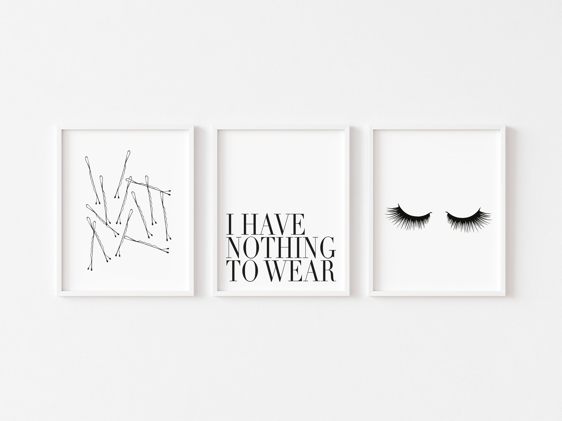Set of 3 fashion prints, nothing to wear, eyelashes, bobby pins set of bedroom fashion dressing room unframed wall art poster prints