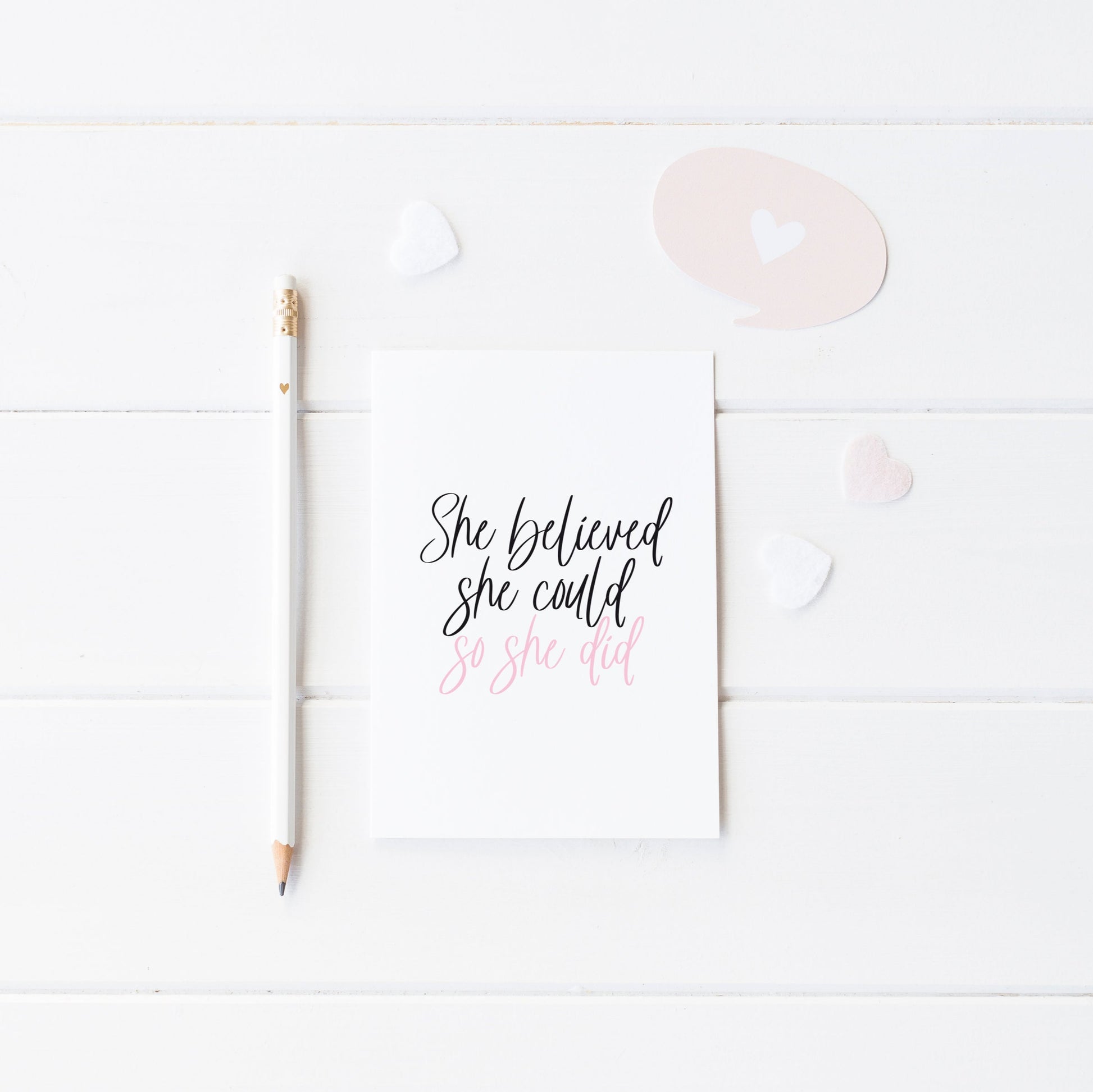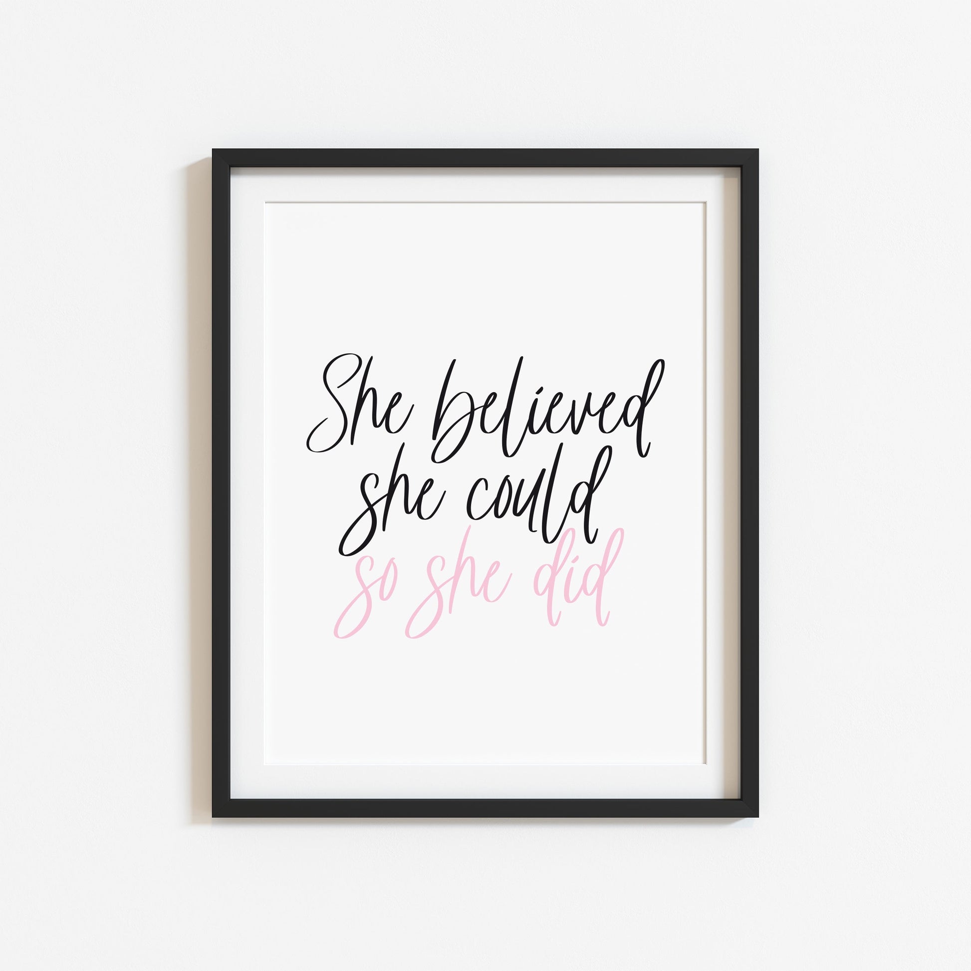 She believed she could so she did pink motivational style office unframed wall art poster print