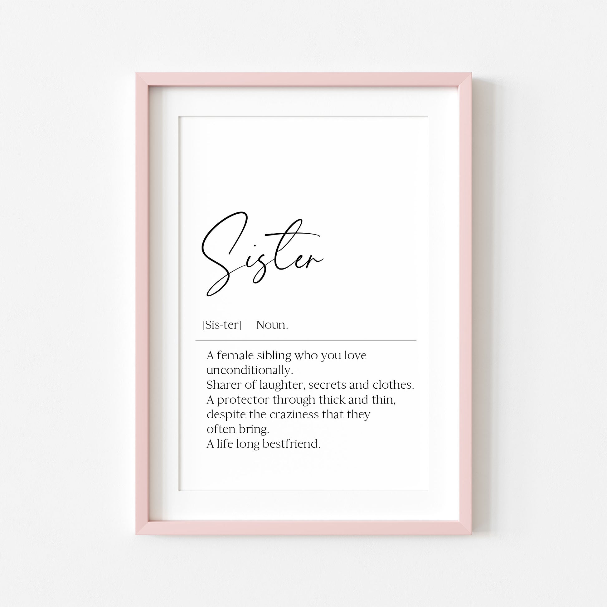 Sister definition, sister bestie definition birthday gift unframed wall art poster print, gifts for sisters, best sisters, sisters birthday