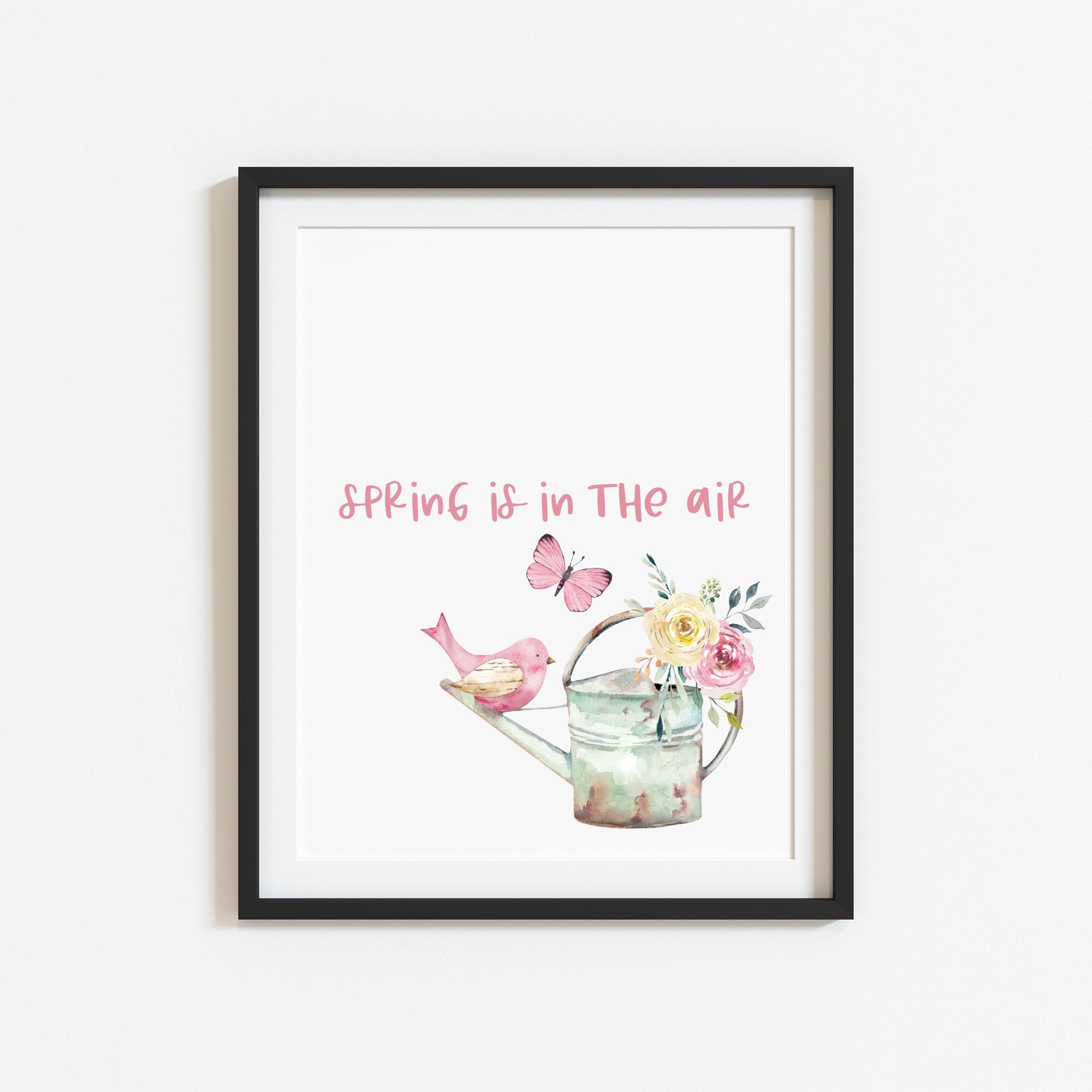 Spring is in the air pink floral birds and butterflies illustration unframed wall art poster print