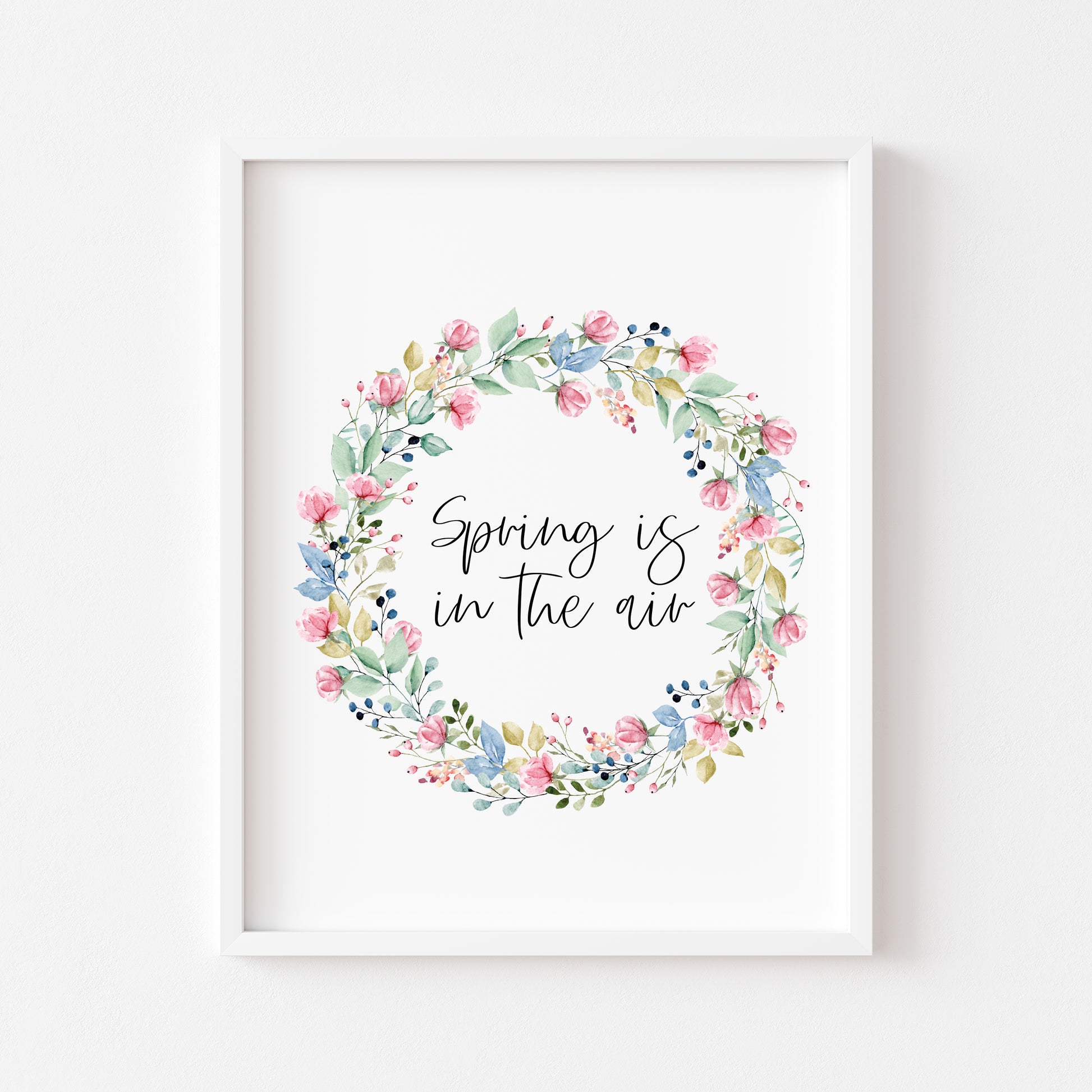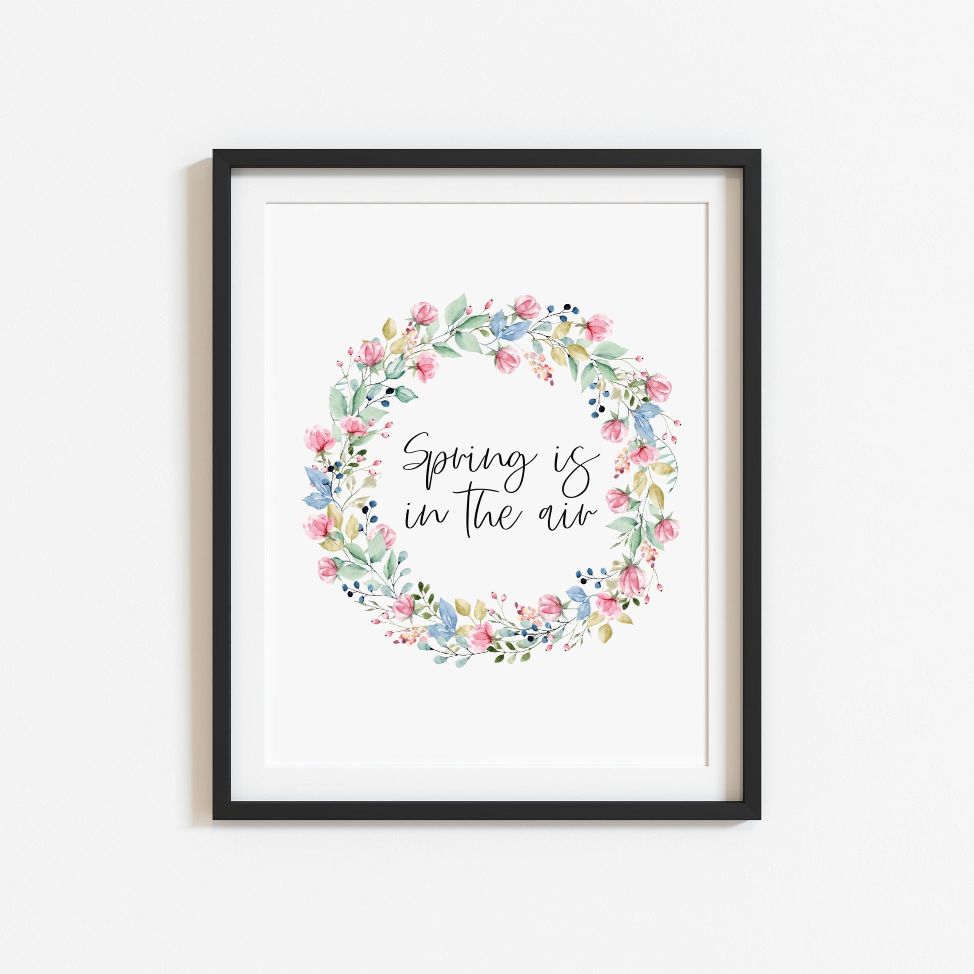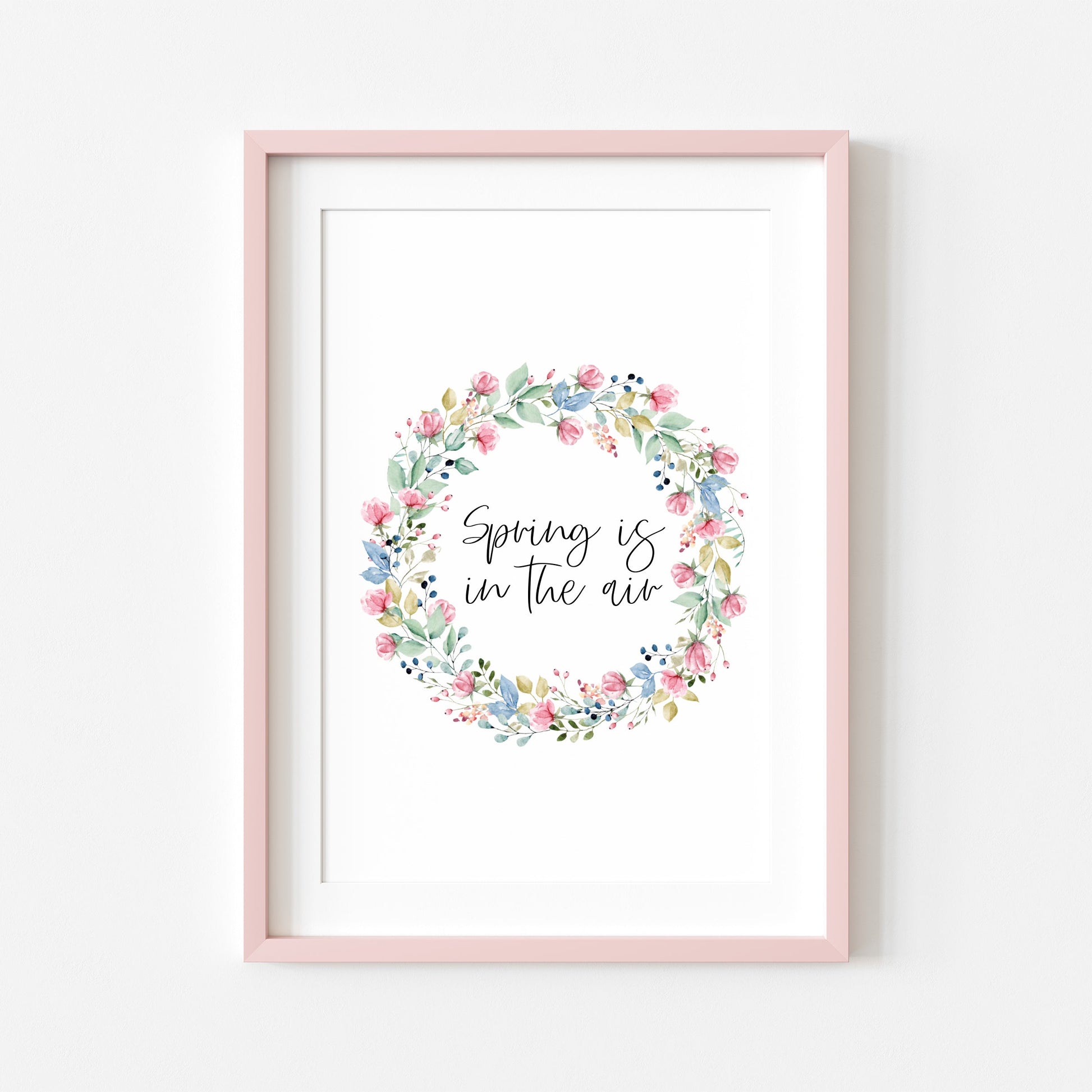 Spring is in the air pink floral wreath illustration seasonal unframed wall art poster print