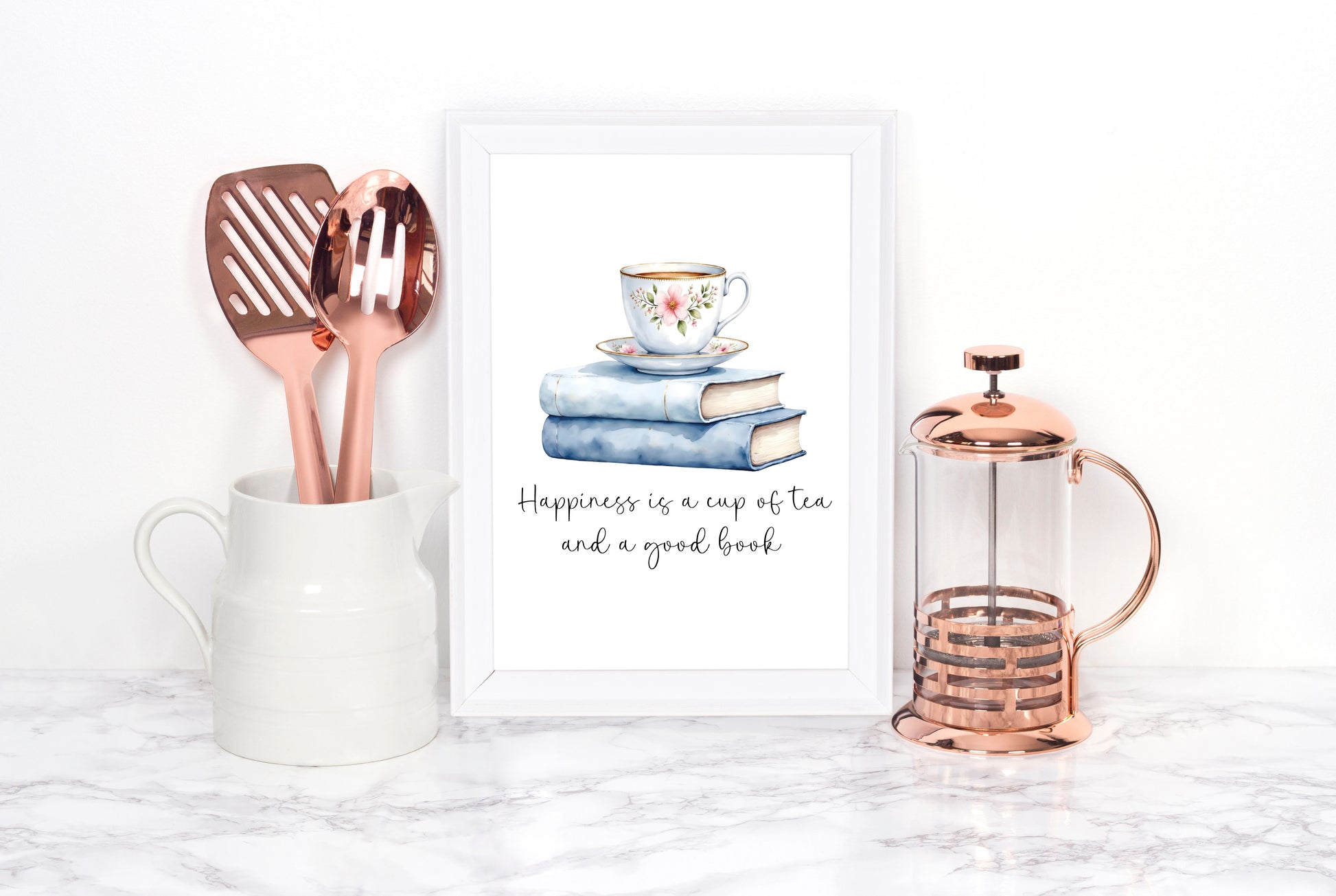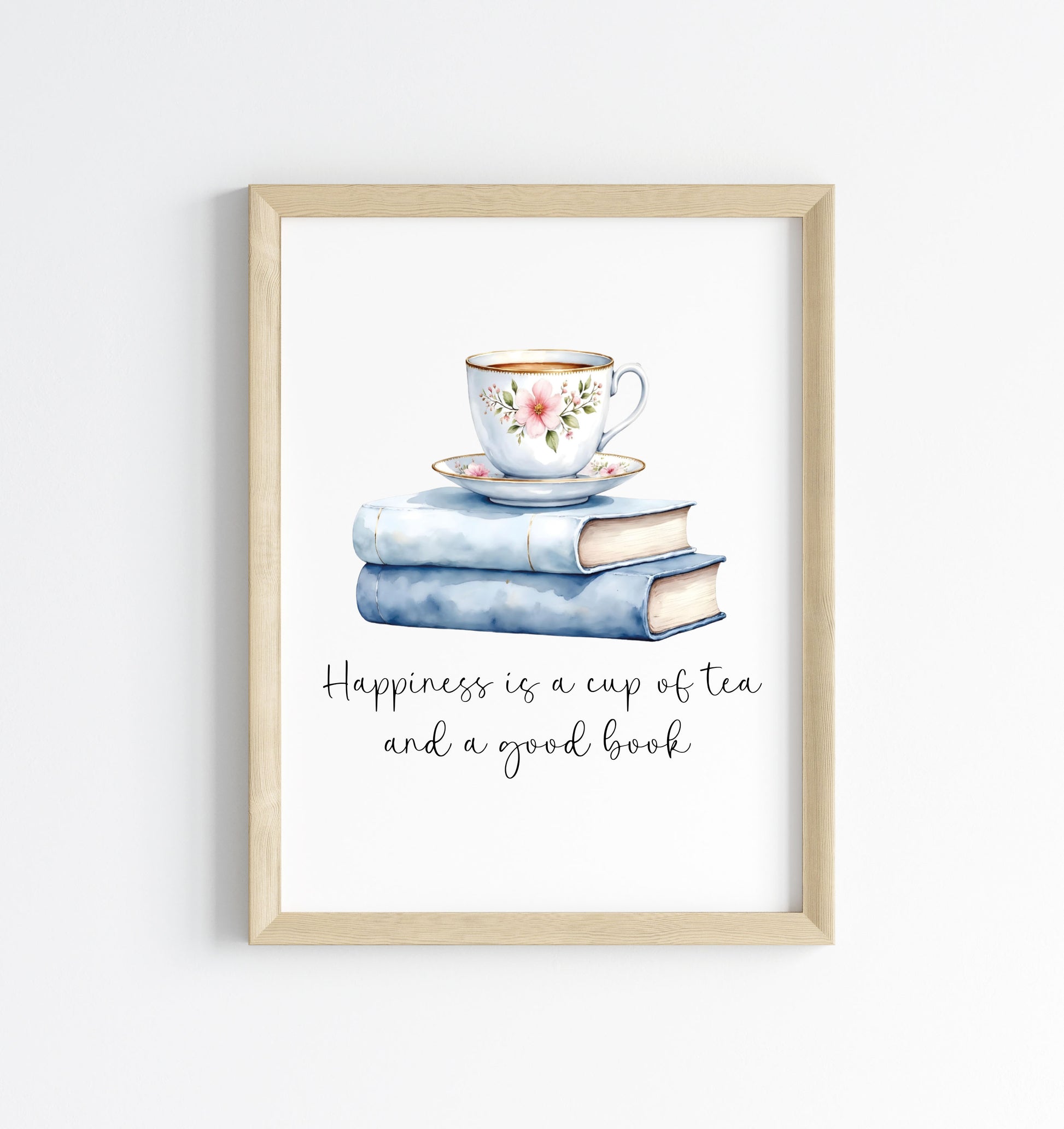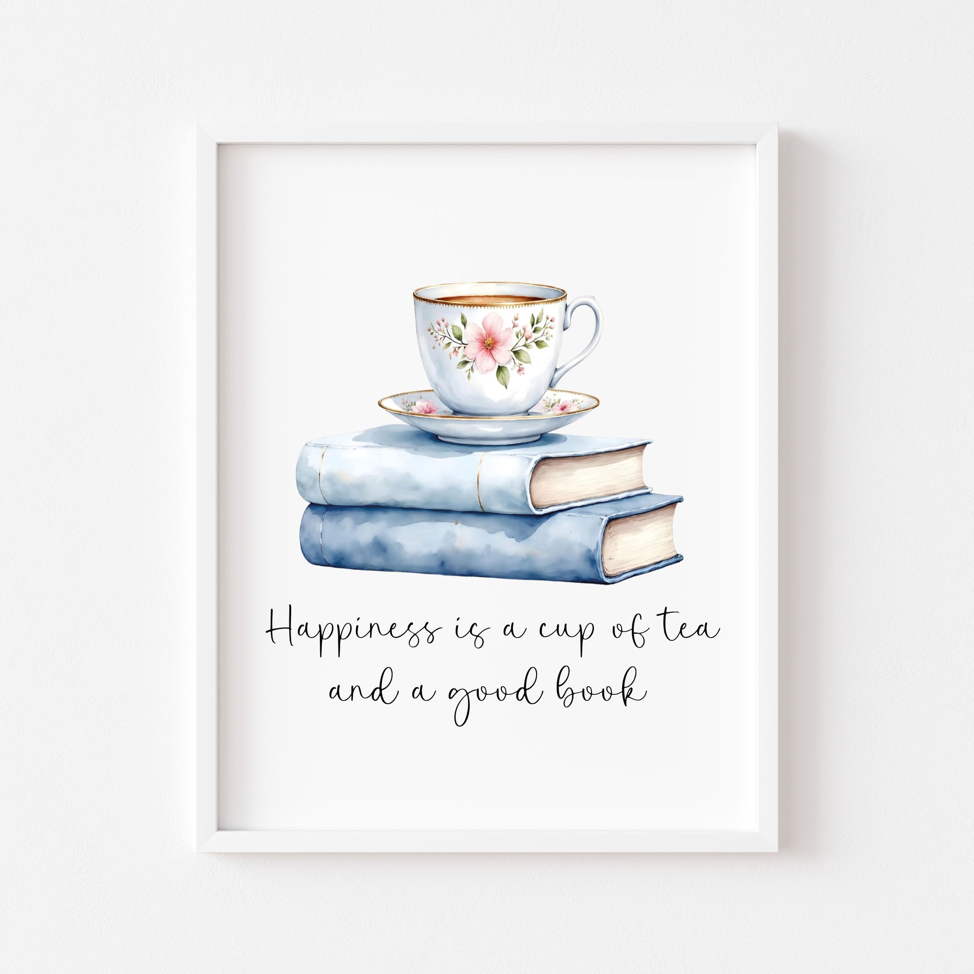 Tea and Books Watercolour Print Book Lover Gift, Unframed Wall Art. Perfect for framing and styling to match your decor, home, hallway, bedroom etc! Or they make a perfect gift to the book addict reading loving friend!