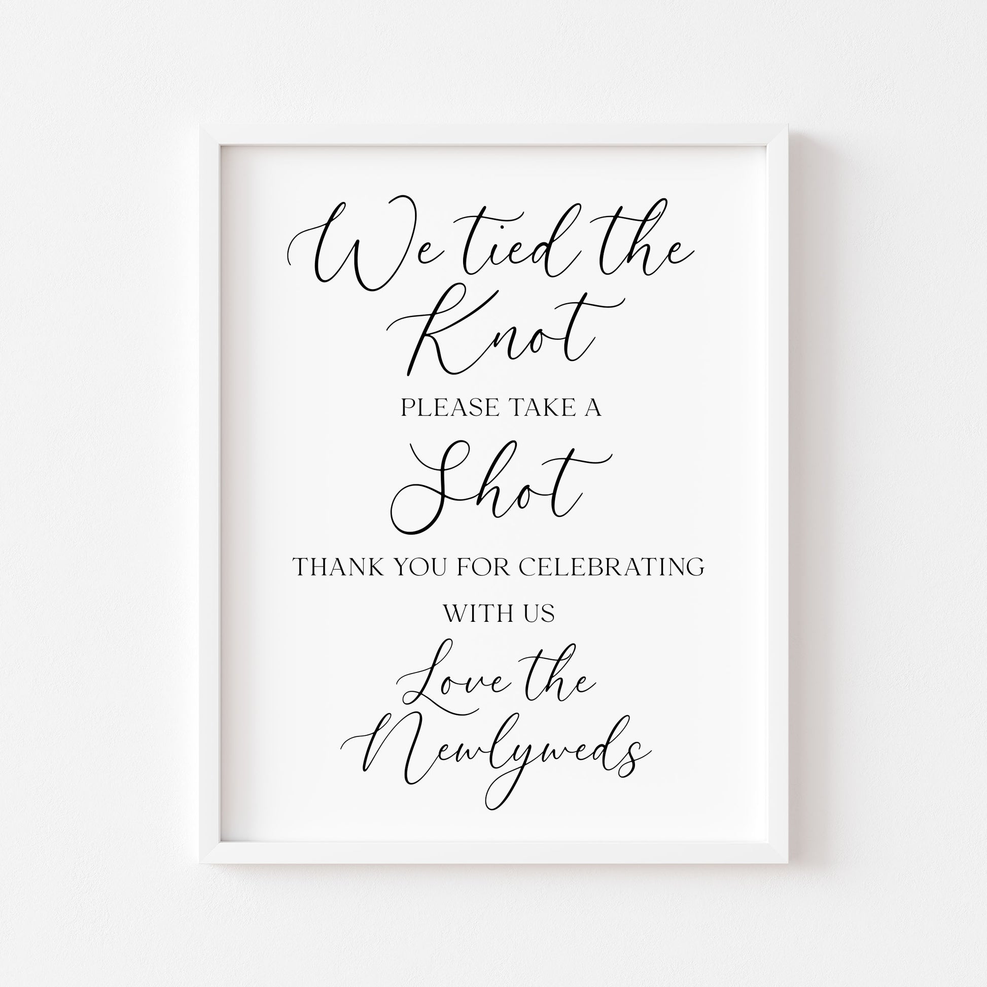 Tied the knot take a shot Wedding Sign Alcohol Bar, love the newly weds (Unframed Print)