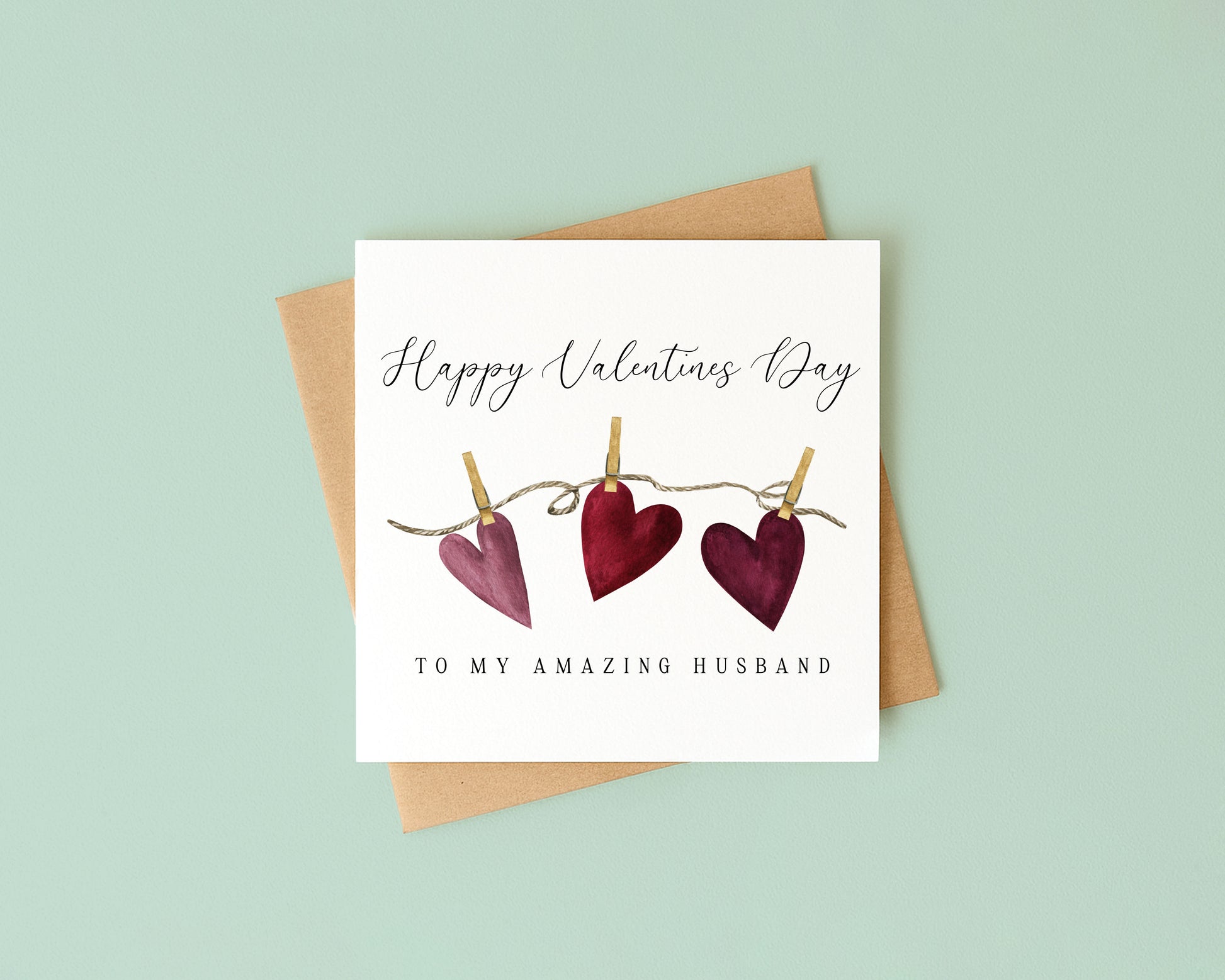 Valentines card, Wife Husband Hanging hearts watercolour couples valentines day with Envelope Makes the perfect unique card to add a special touch to your partners valentines day!