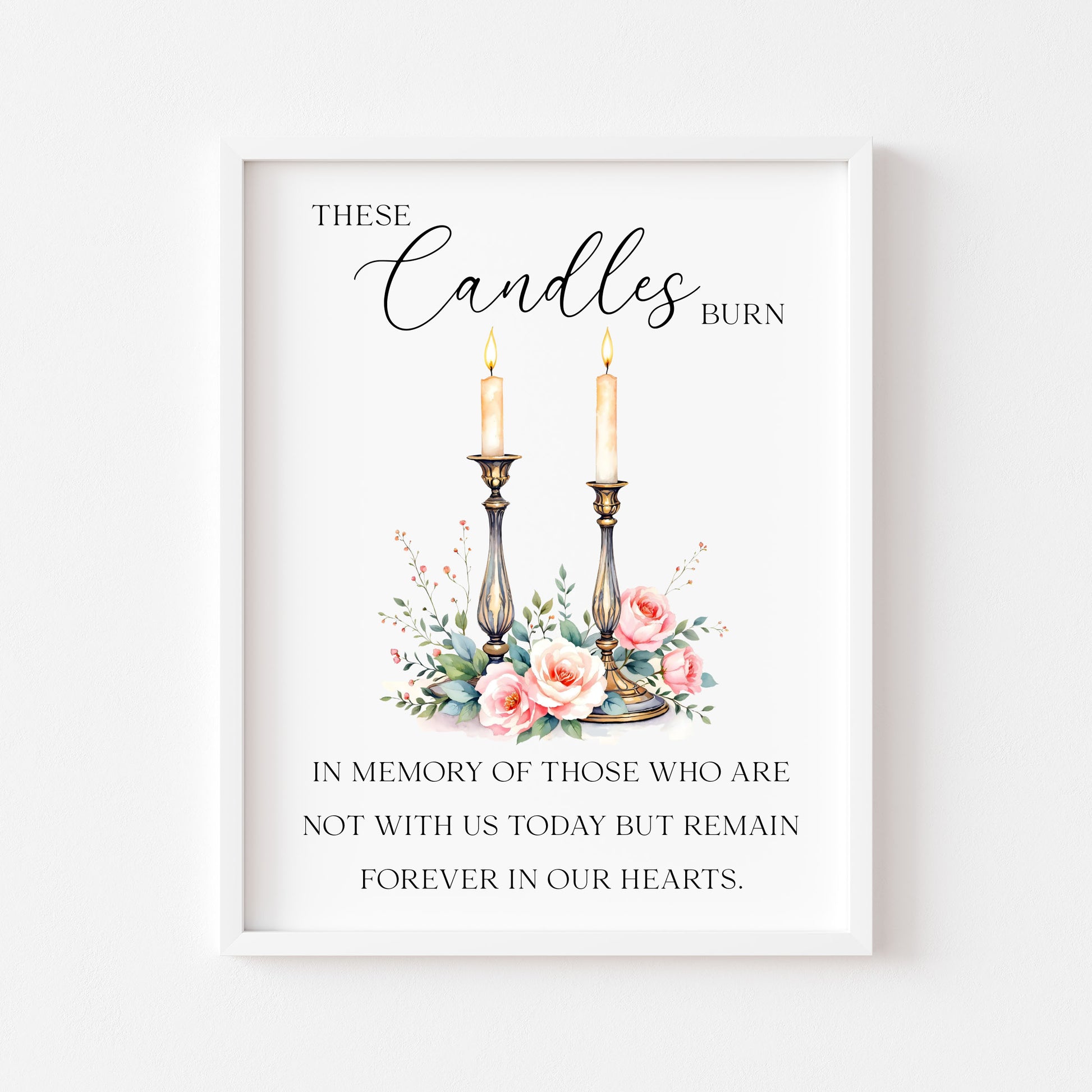 Wedding memorial candles print, In loving memory unframed wall art poster. Perfect for framing and styling on your wedding day to remember your special loved ones.