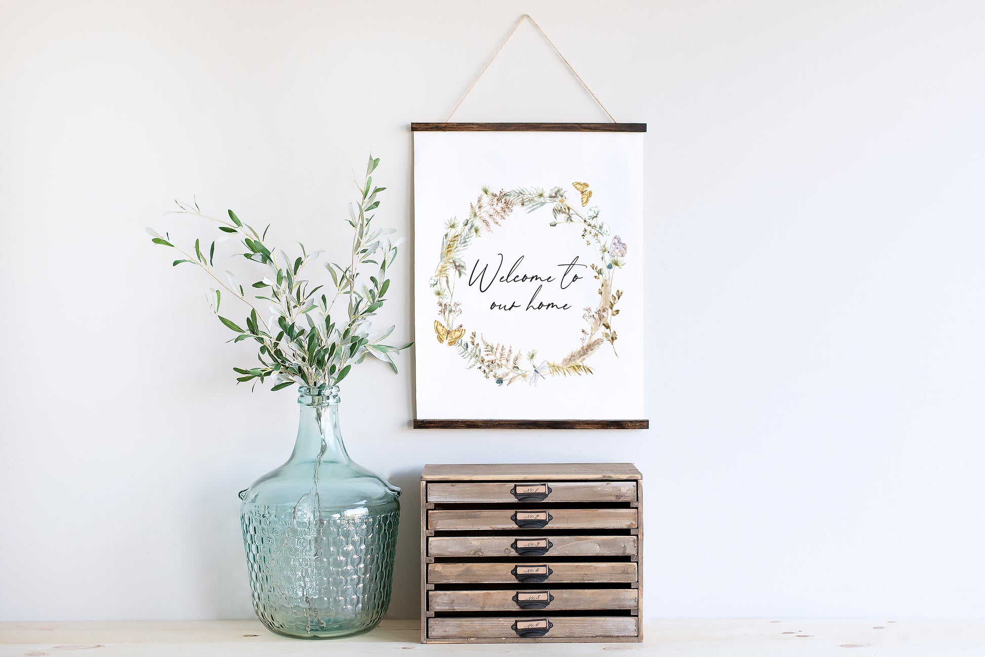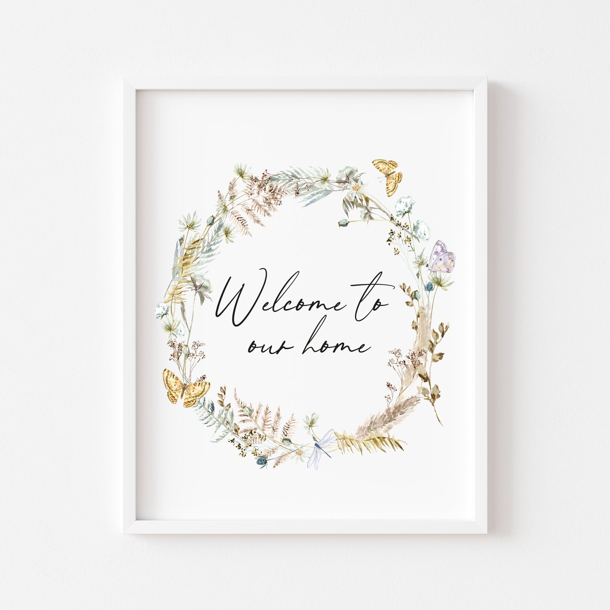 Welcome to our home boho butterfly floral wreath home unframed wall art poster print