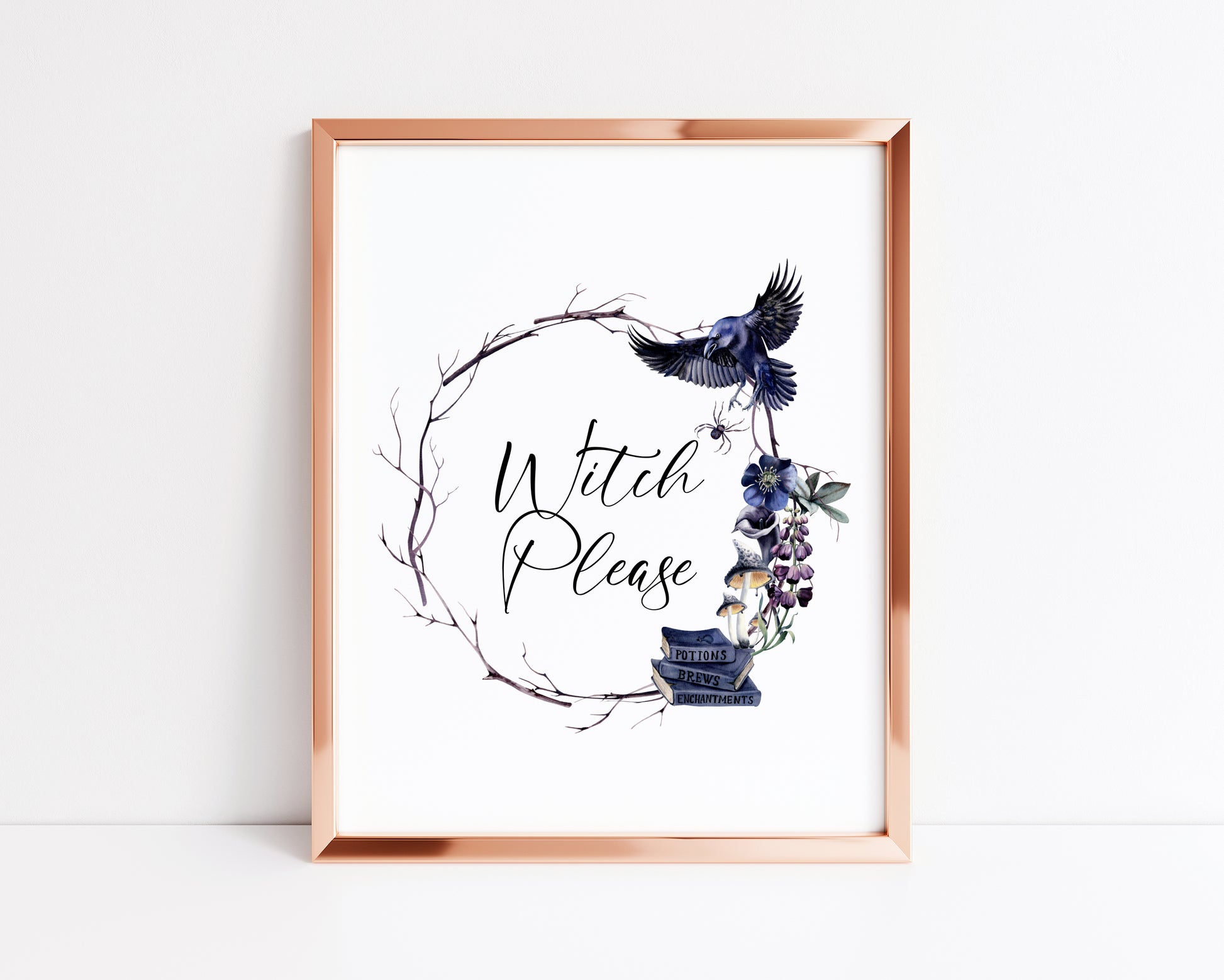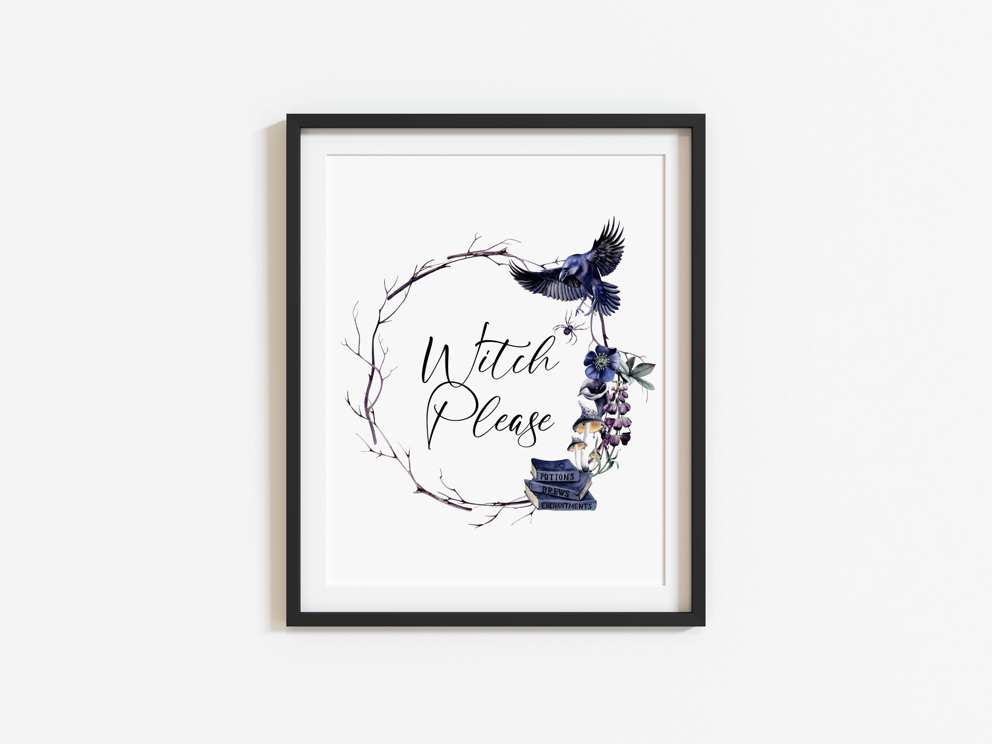 Witch please Halloween watercolour spooky wreath seasonal unframed wall art poster print